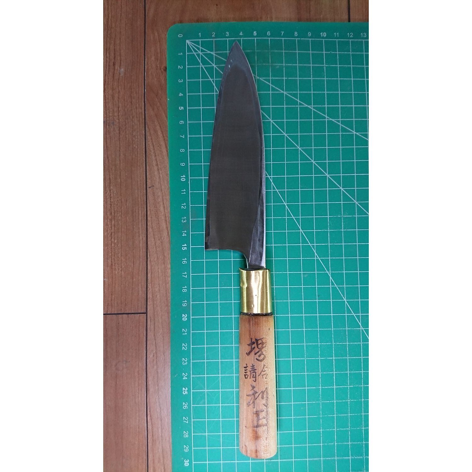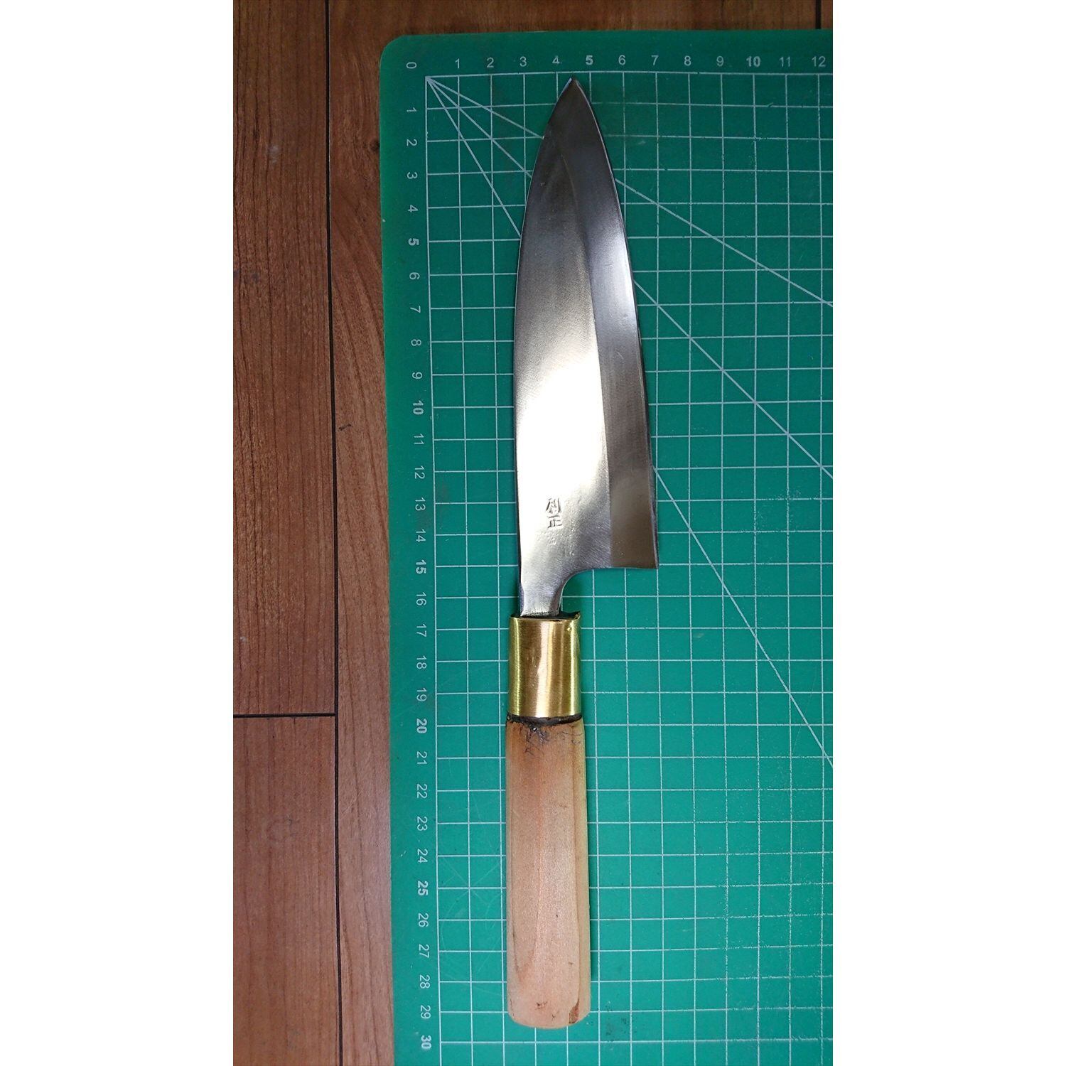 1. o2601/状態:中古/銘:堺利正/出刃包丁(片刃 右利き用)/刃長:150/峰厚 アゴ上:7.3/重量:223/作り:鋼/他: