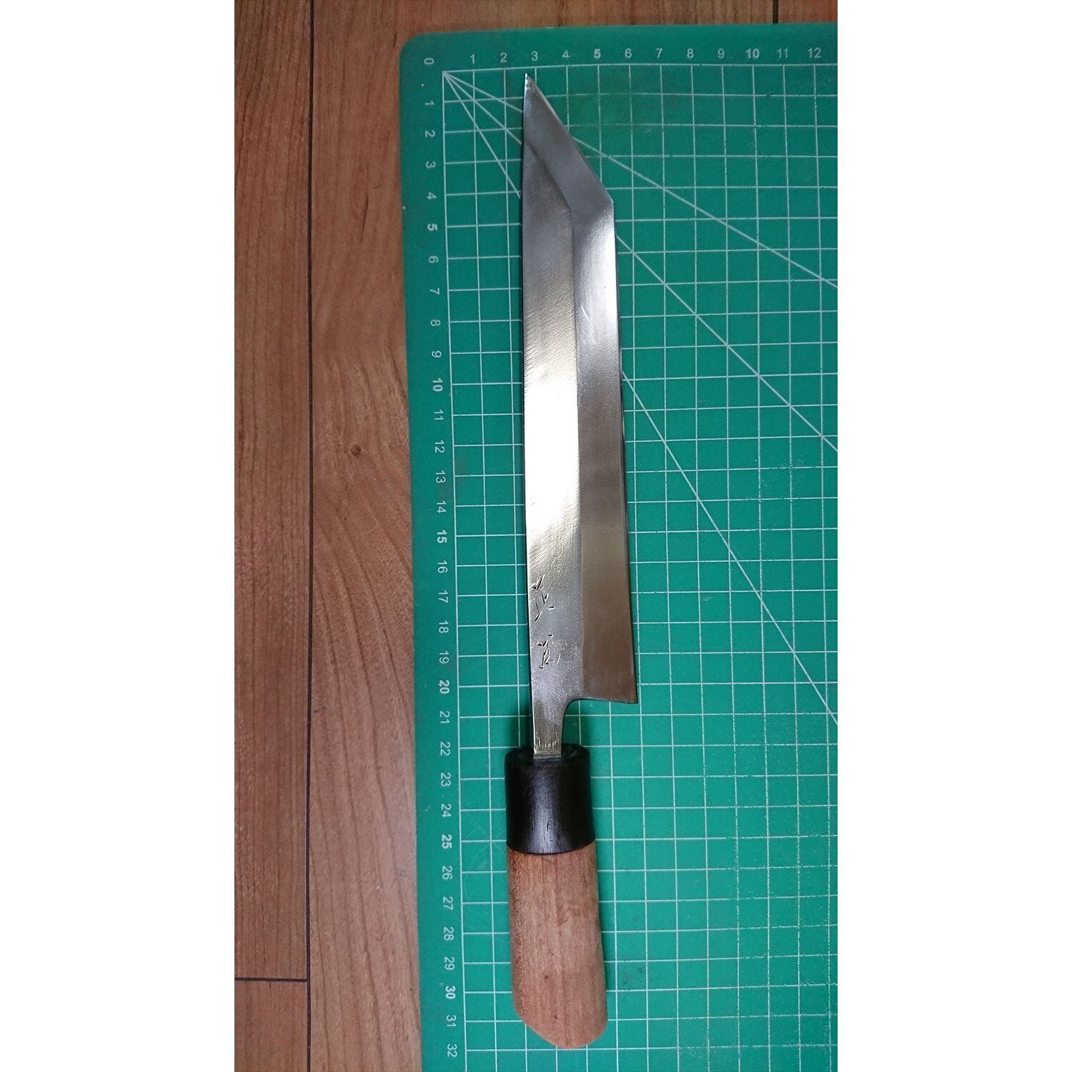 1. o2652/状態:中古/銘:正為?/鰻サキ包丁(片刃 右利き用)/刃長:205/峰厚 アゴ上:6.8/重量:216/作り:鋼 水牛柄/他: