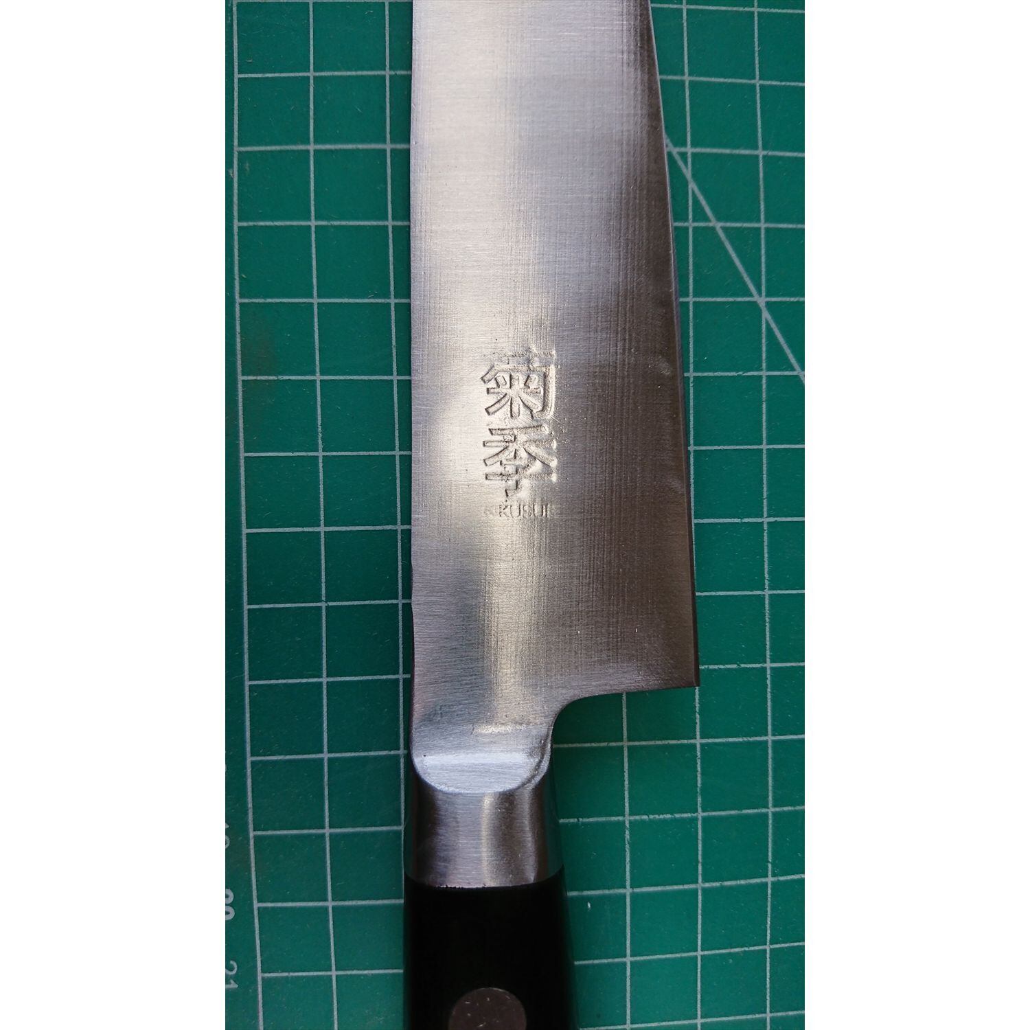 1. o2694/状態:中古/銘:菊季/三徳包丁(両刃 左5:右5 右利き・左利き兼用)/刃長:170/峰厚 アゴ上:1.8/重量:141/作り:鋼/他:
