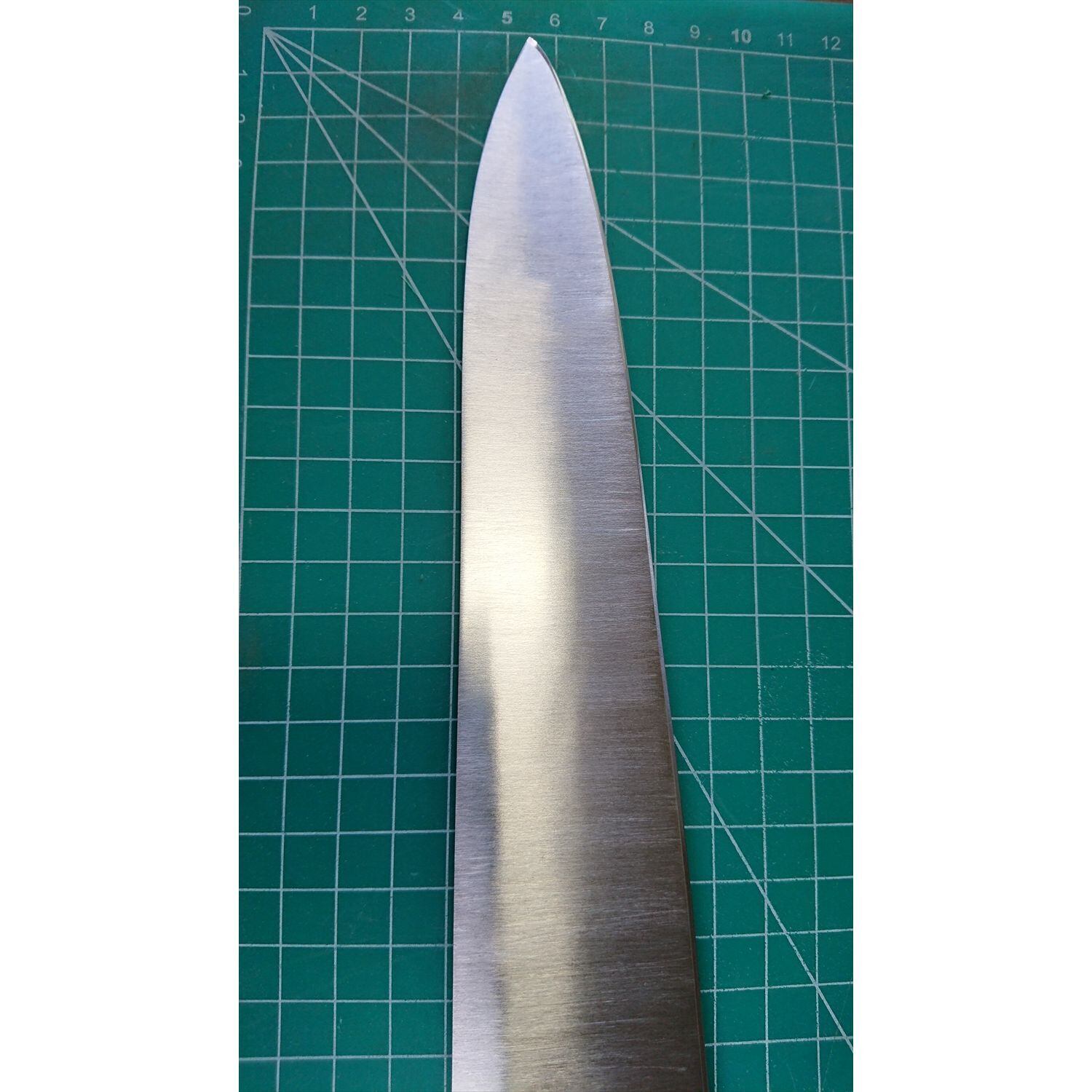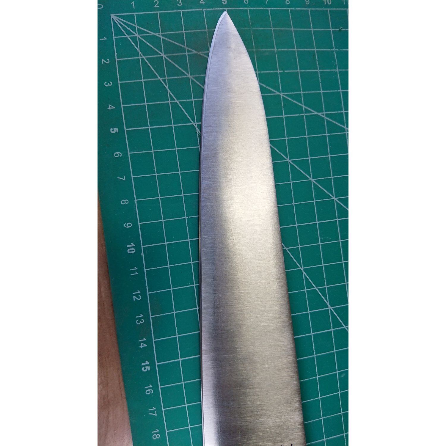 1. o2722/状態:中古/銘:堺孝行/牛刀(両刃 左5:右5 右利き・左利き兼用)/刃長:295/峰厚 アゴ上:1.7/重量:241/作り:鋼/他: