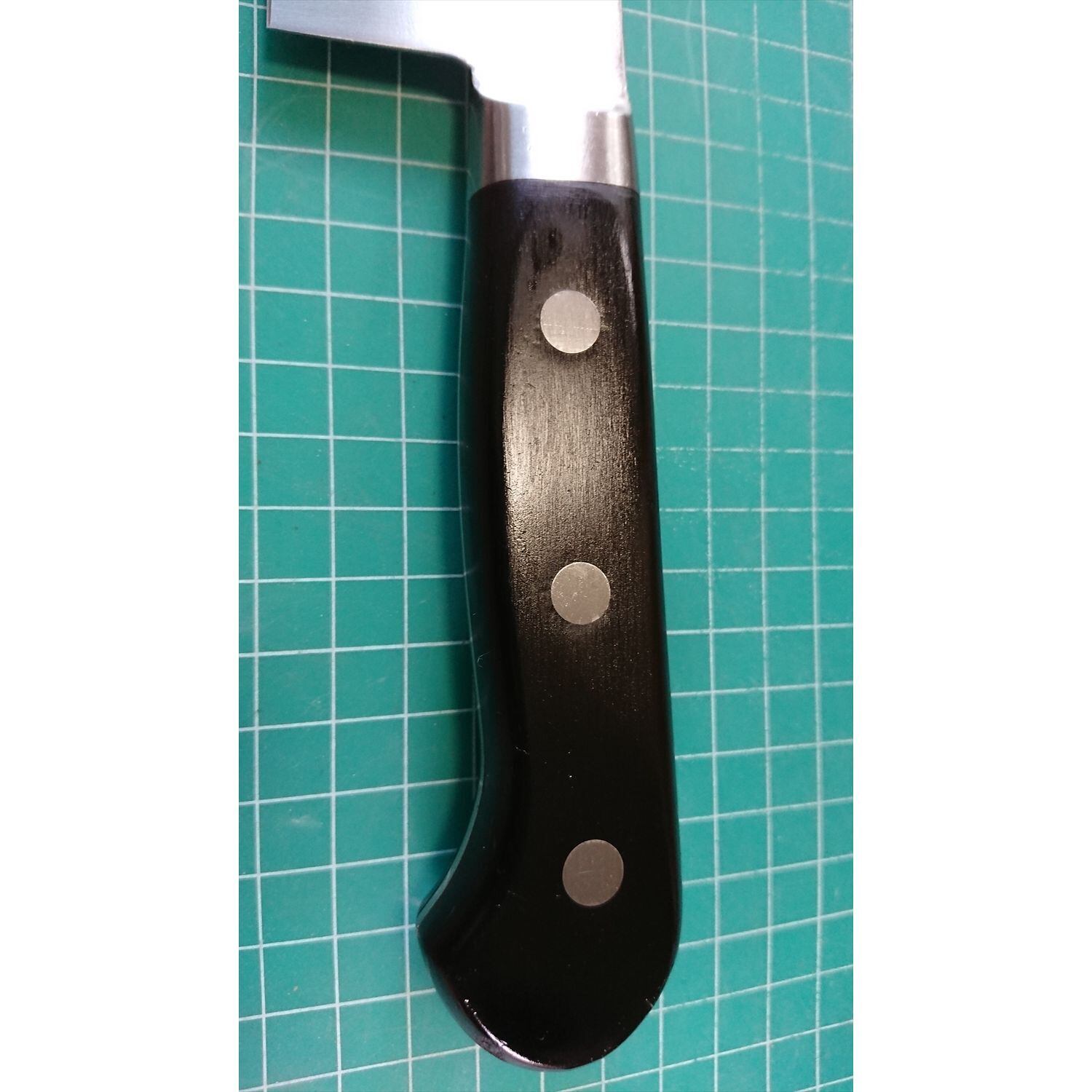 1. o2729/状態:中古/銘:Misono(ミソノ)440/牛刀(両刃 左5:右5 右利き・左利き兼用)/刃長:270/峰厚 アゴ上:2.1/重量:254/作り:MOLYBDENUM STEEL/他: