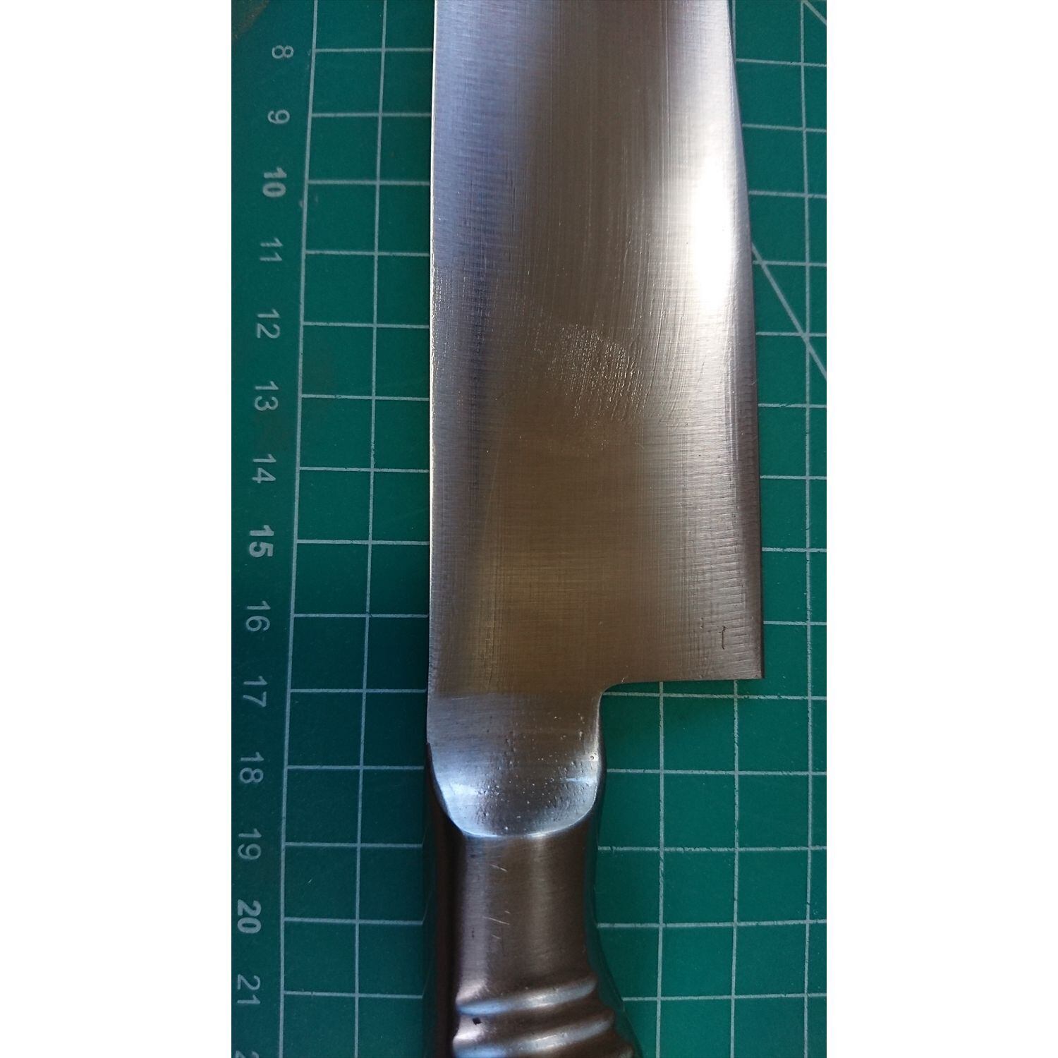 1. o2878/状態:中古/銘:銘?/三徳包丁(両刃 左5:右5 右利き・左利き兼用)/刃長:170/峰厚 アゴ上:1.9/重量:145/作り:ステンレス系/他: