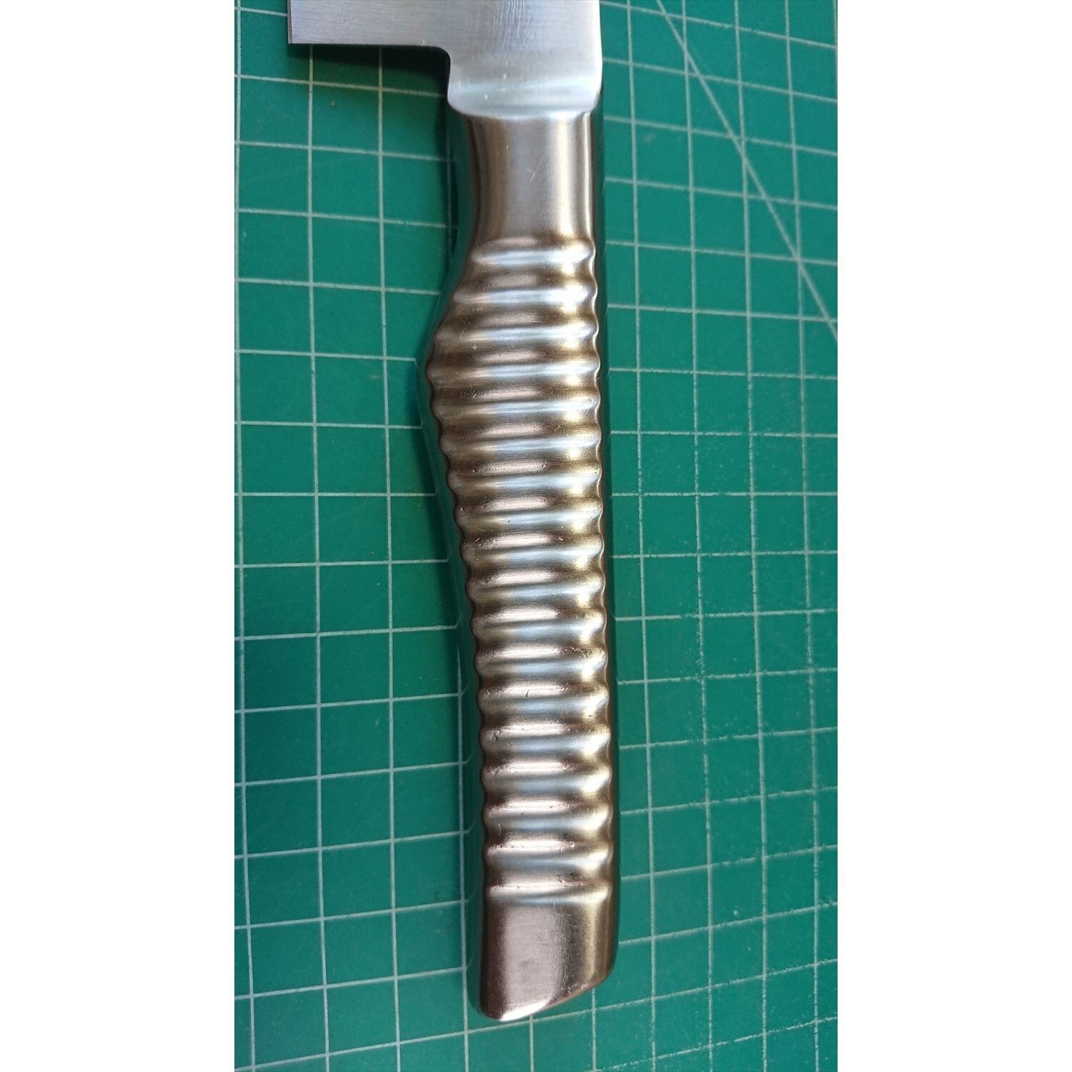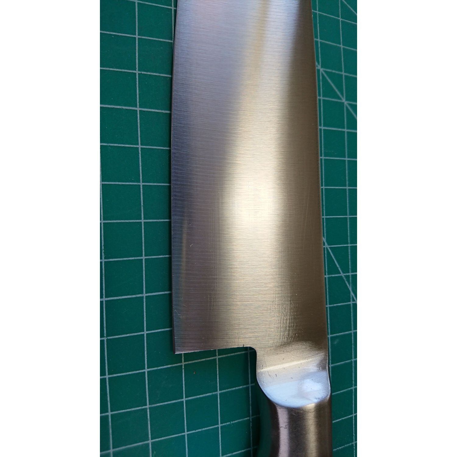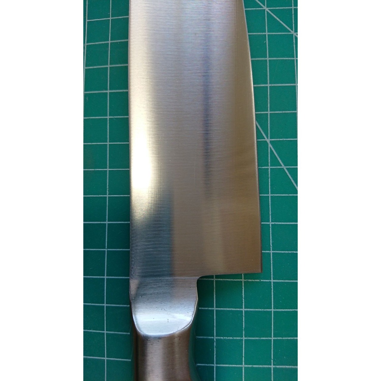 1. o2883/状態:中古/銘:銘?/三徳包丁(両刃 左5:右5 右利き・左利き兼用)/刃長:170/峰厚 アゴ上:1.9/重量:145/作り:ステンレス系/他: