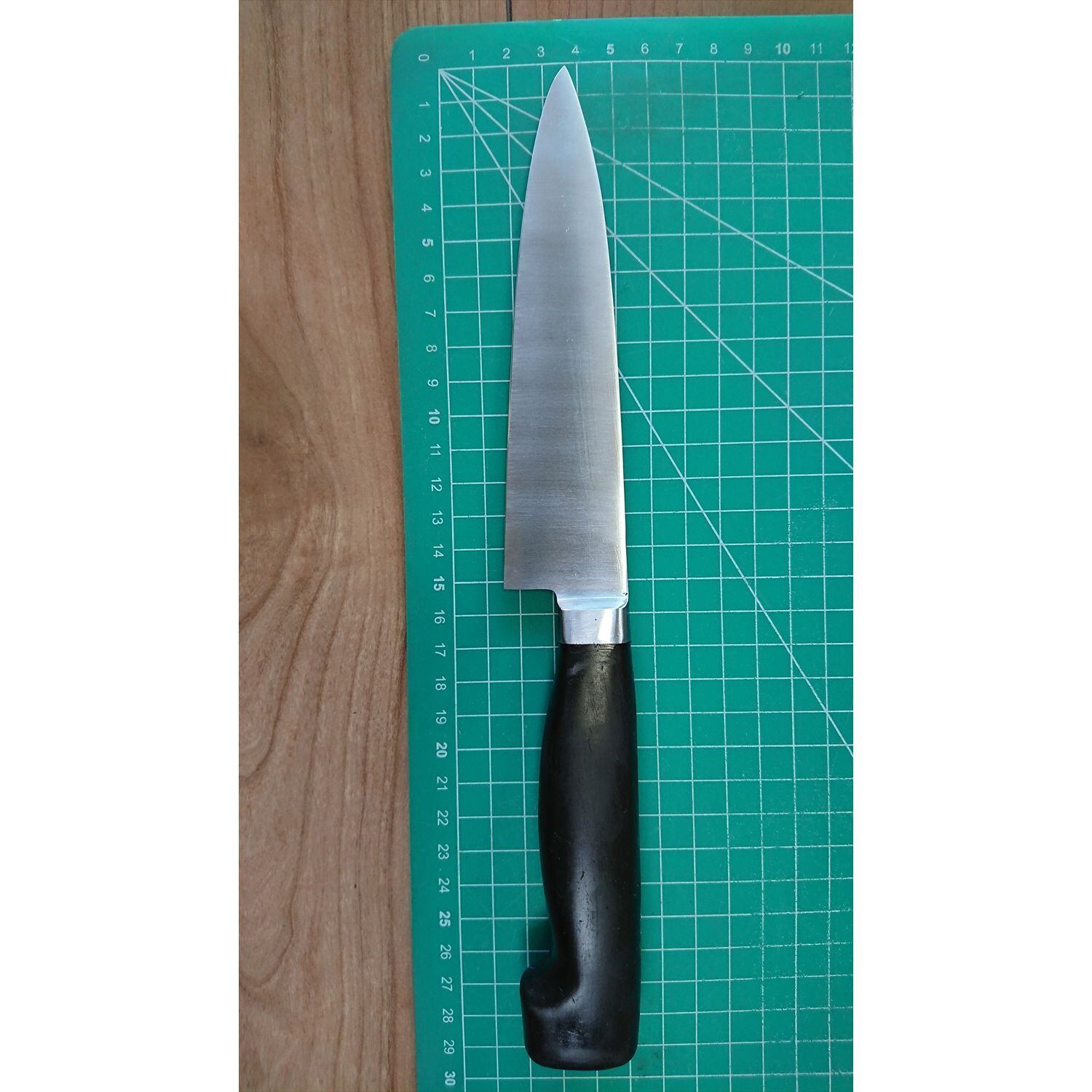 1. o2758/状態:中古/銘:ヘンケルス SOLINGEN GERMANY/牛刀(両刃 約 左1:右9 右利き用)/刃長:155/峰厚 アゴ上:3.5/重量:185/作り:NO STAIN/他: