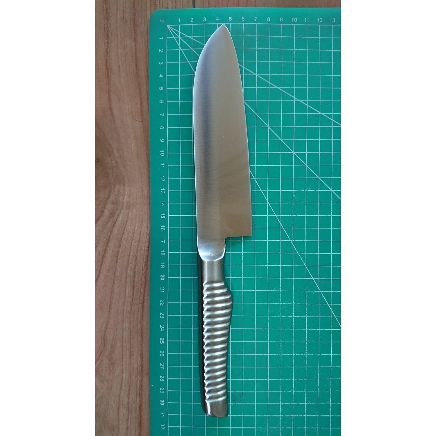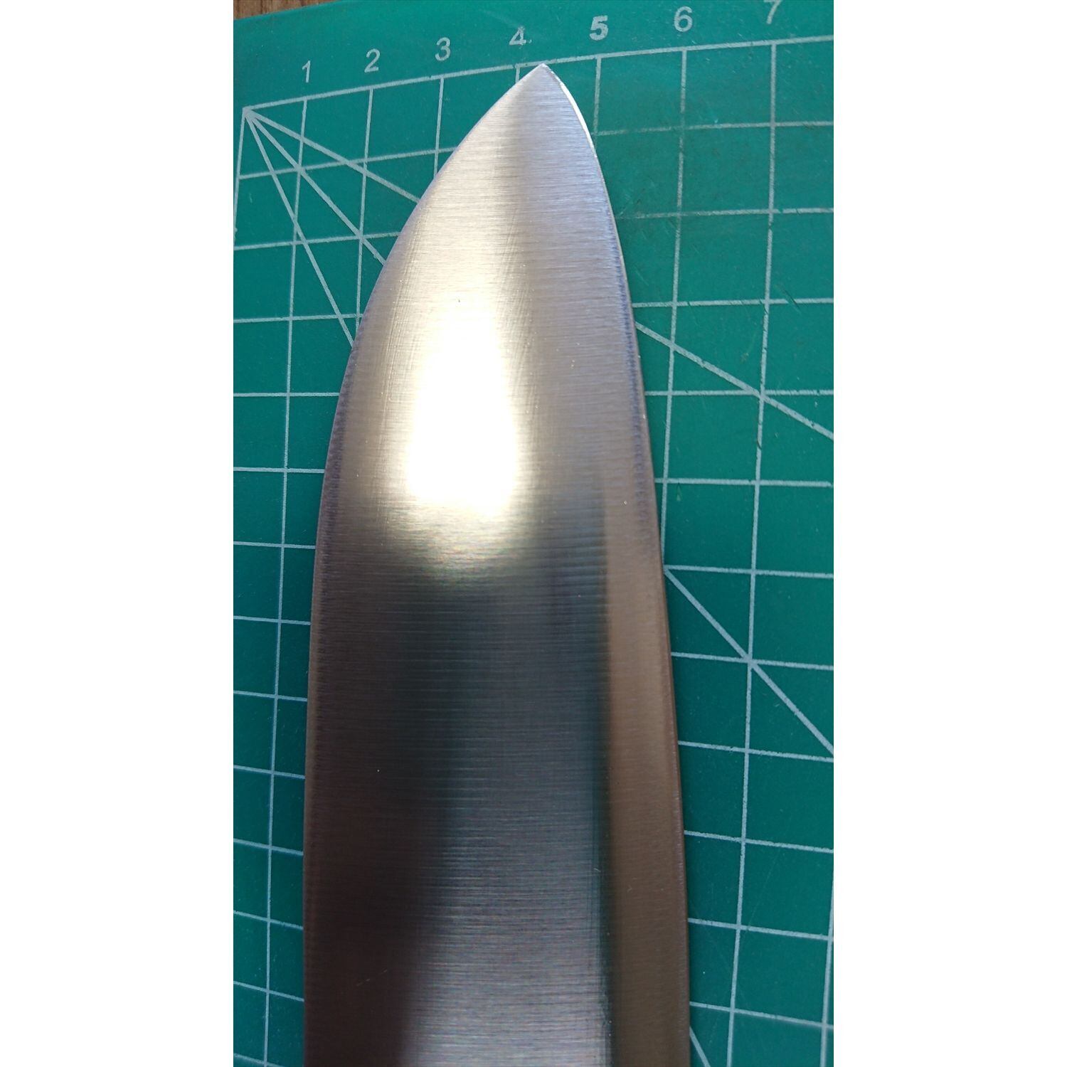 1. o2886/状態:中古/銘:銘?/三徳包丁(両刃 左5:右5 右利き・左利き兼用)/刃長:170/峰厚 アゴ上:1.9/重量:145/作り:ステンレス系/他: