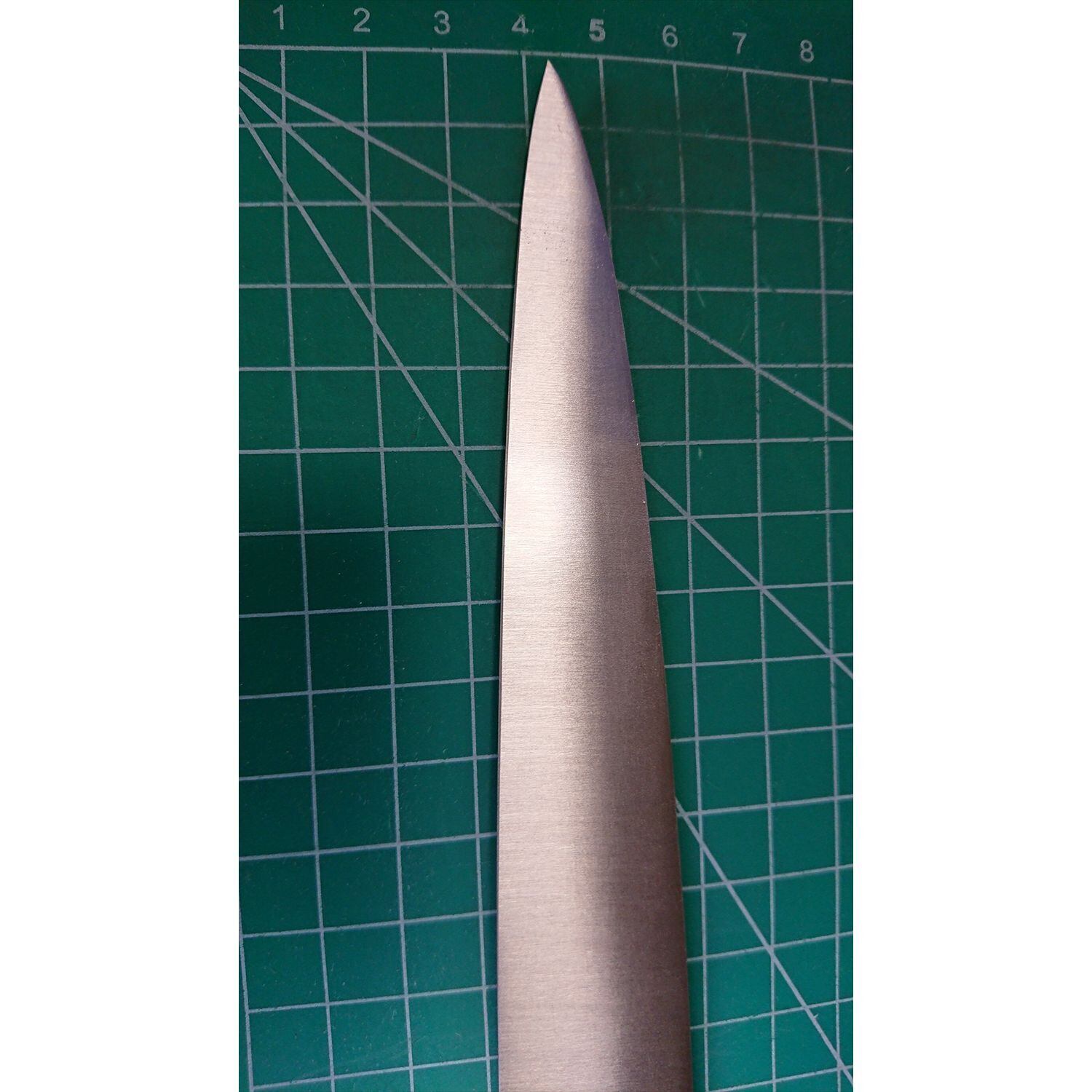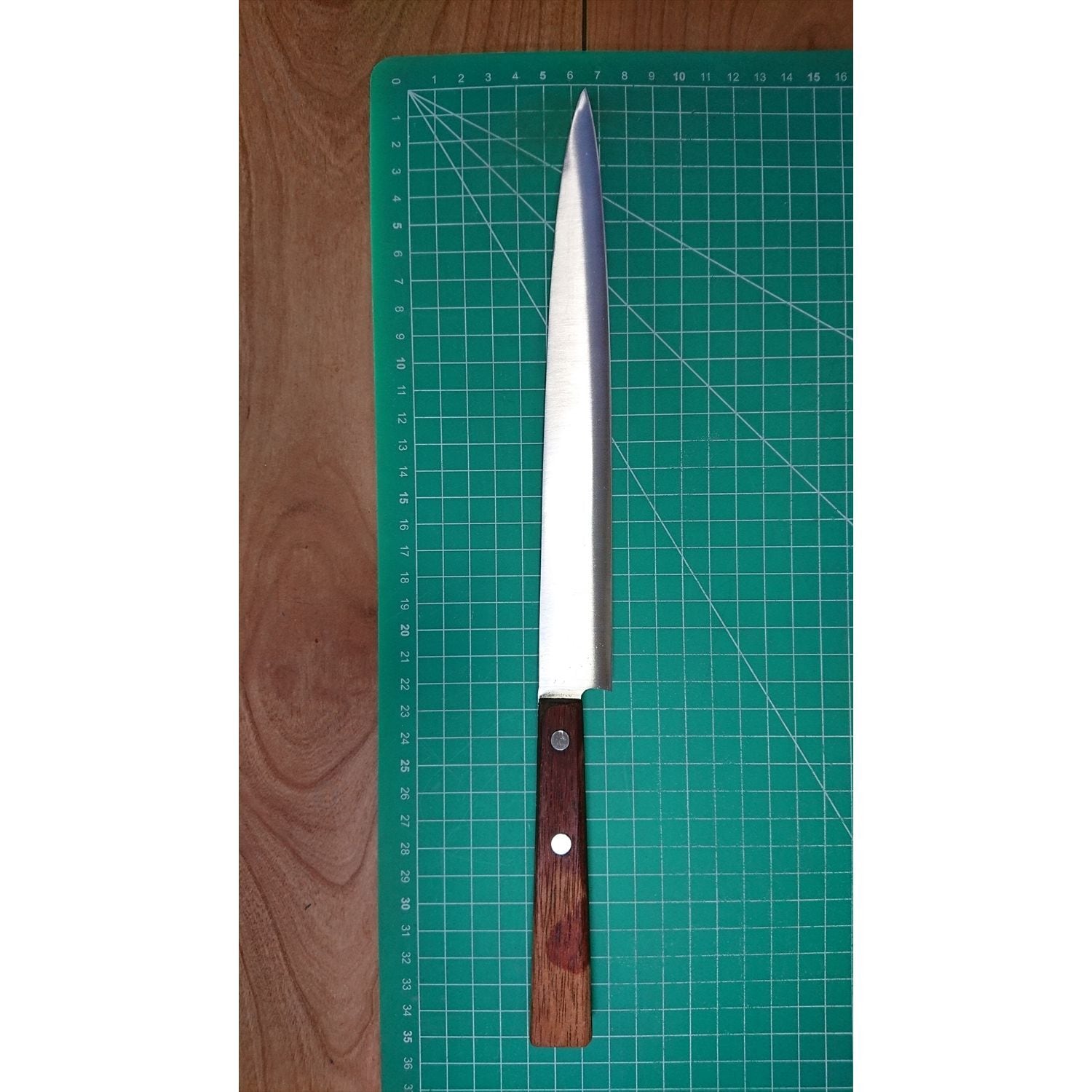 1. o2702/状態:中古/銘:朱鷲/刺身包丁(両刃 約 左1:右9 右利き用)/刃長:220/峰厚 アゴ上:1.3/重量:76/作り:特殊鋼/他:銘はクリーニングにより消失