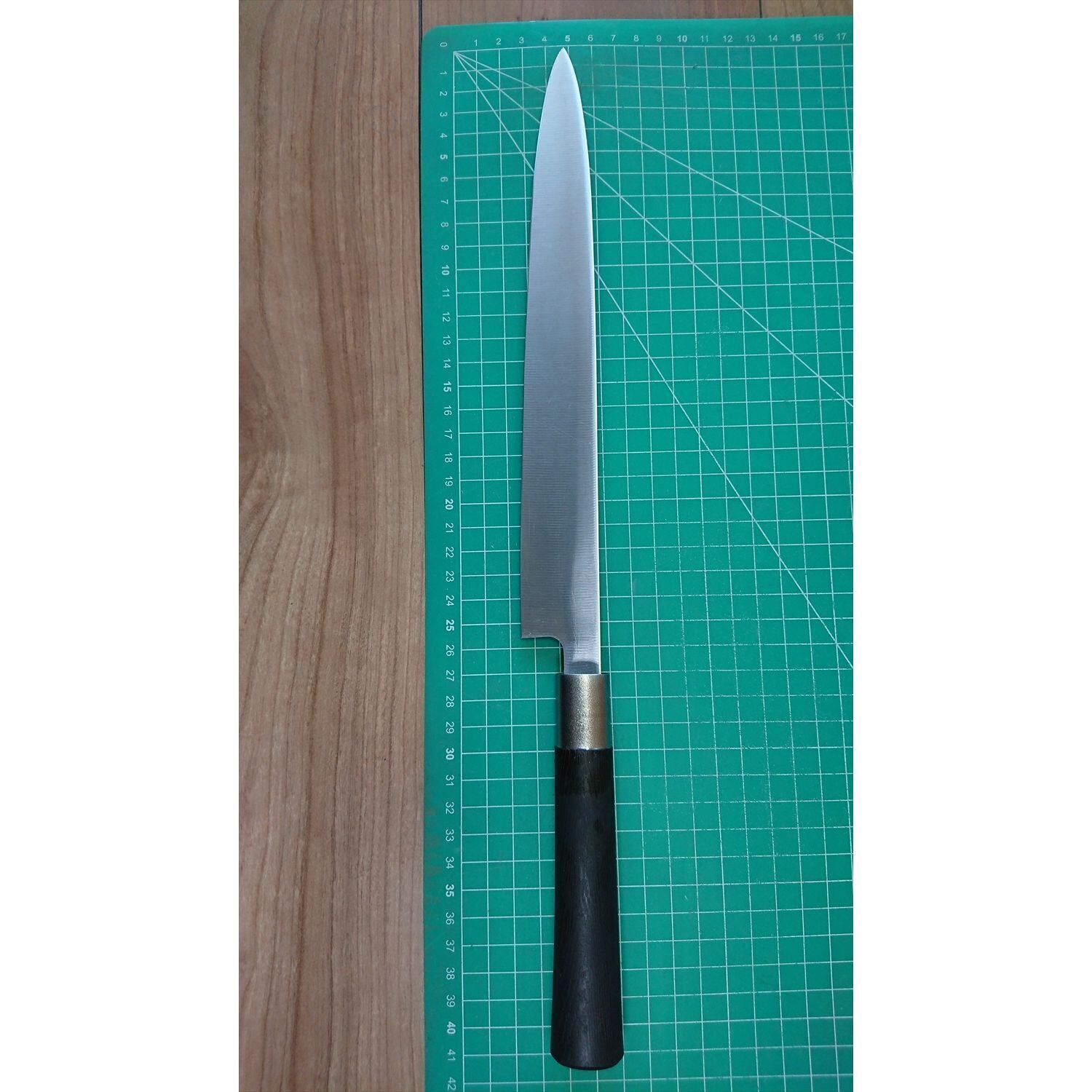 1. o2916/状態:中古/銘:関兼次/筋引包丁(両刃 左5:右5 右利き・左利き兼用)/刃長:260/峰厚 アゴ上:1.7/重量:137/作り:MOLYBDENUM STEEL/他: