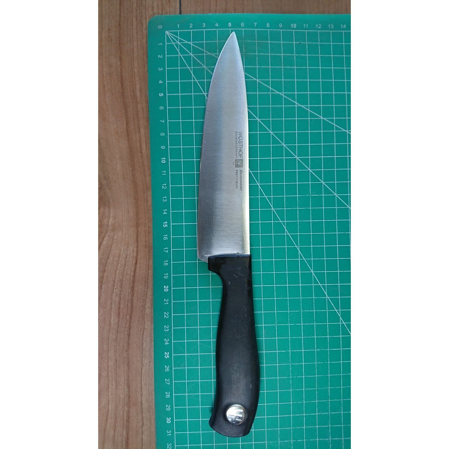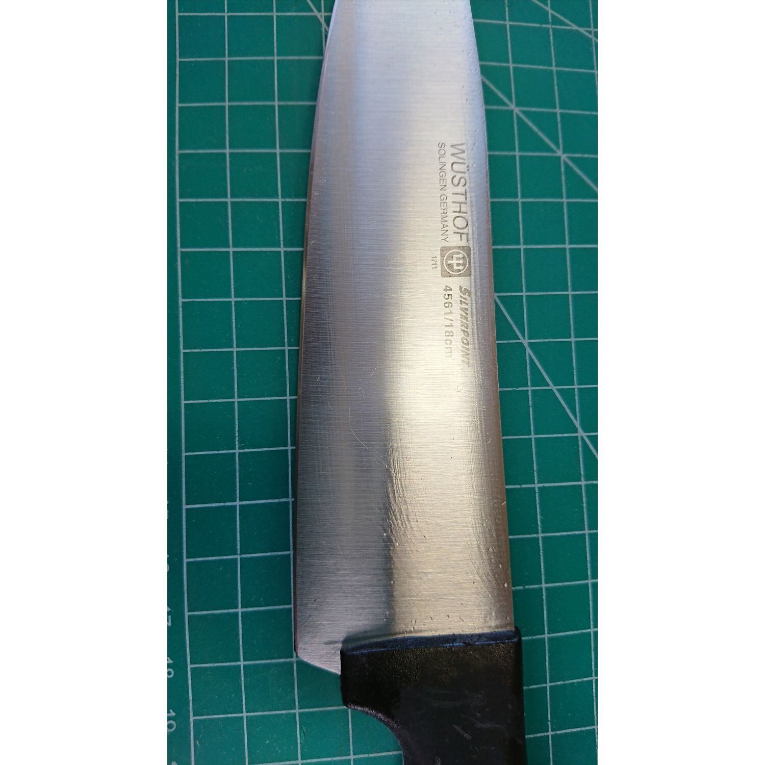 1. o2796/状態:中古/銘:WUSTHOF(ヴォストフ)/牛刀(両刃 左5:右5 右利き・左利き兼用)/刃長:175/峰厚 アゴ上:2.6/重量:124/作り:ステンレス/他: