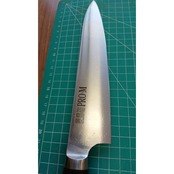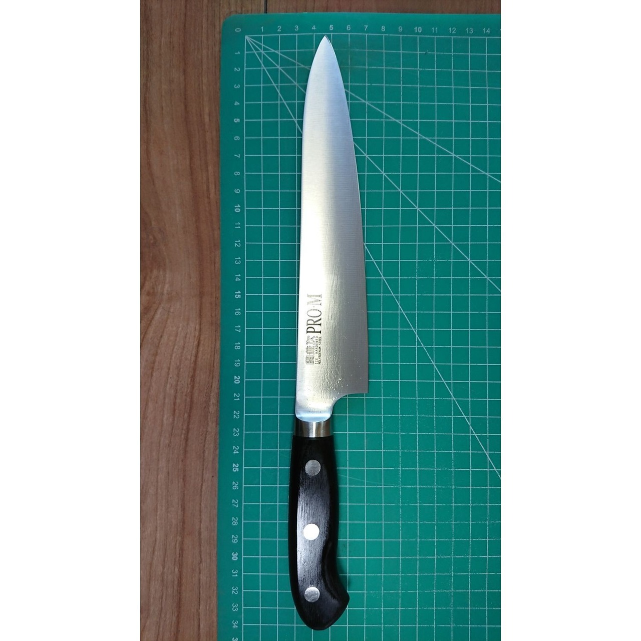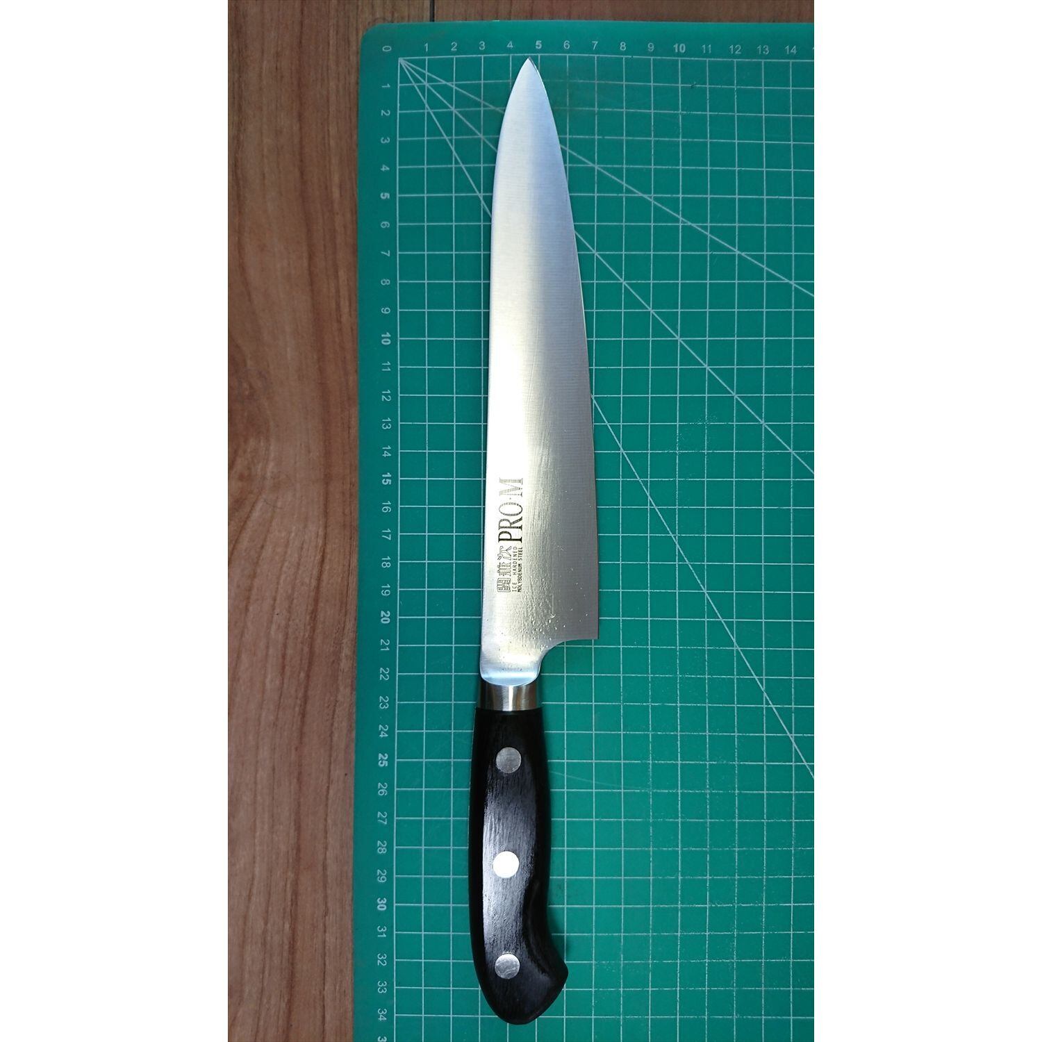 1. o2918/状態:中古/銘:関兼次 PRO・M/牛刀(両刃 左5:右5 右利き・左利き兼用)/刃長:205/峰厚 アゴ上:1.7/重量:157/作り:ICE HARDENED MOLYBDENUM STEEL/他: