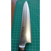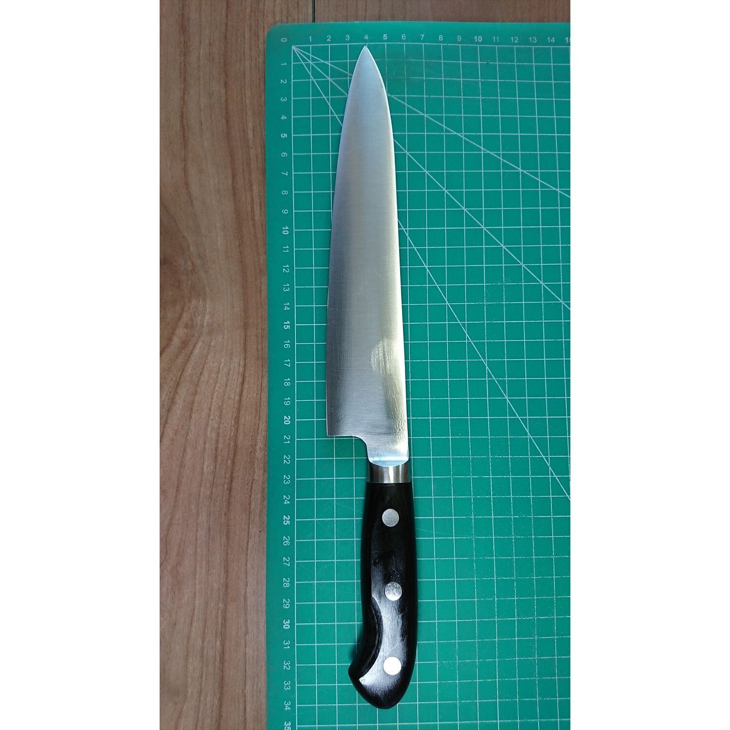 1. o2919/状態:中古/銘:関兼次 PRO・M/牛刀(両刃 左5:右5 右利き・左利き兼用)/刃長:210/峰厚 アゴ上:1.6/重量:156/作り:ICE HARDENED MOLYBDENUM STEEL/他:
