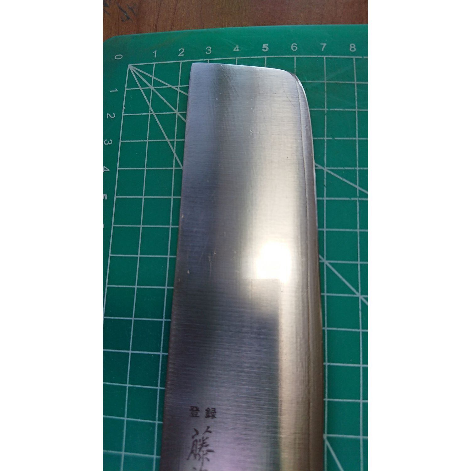 1. o2800/状態:中古/銘:藤次郎/菜切包丁(両刃 左5:右5 右利き・左利き兼用)/刃長:170/峰厚 アゴ上:1.7/重量:192/作り:DP割込鋼(鋼をステンレスでサンド)/他: