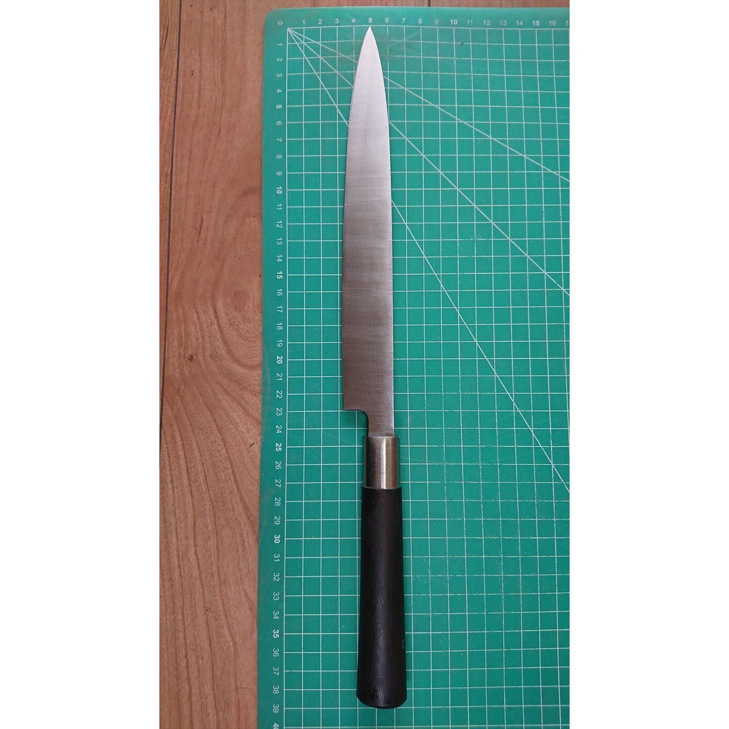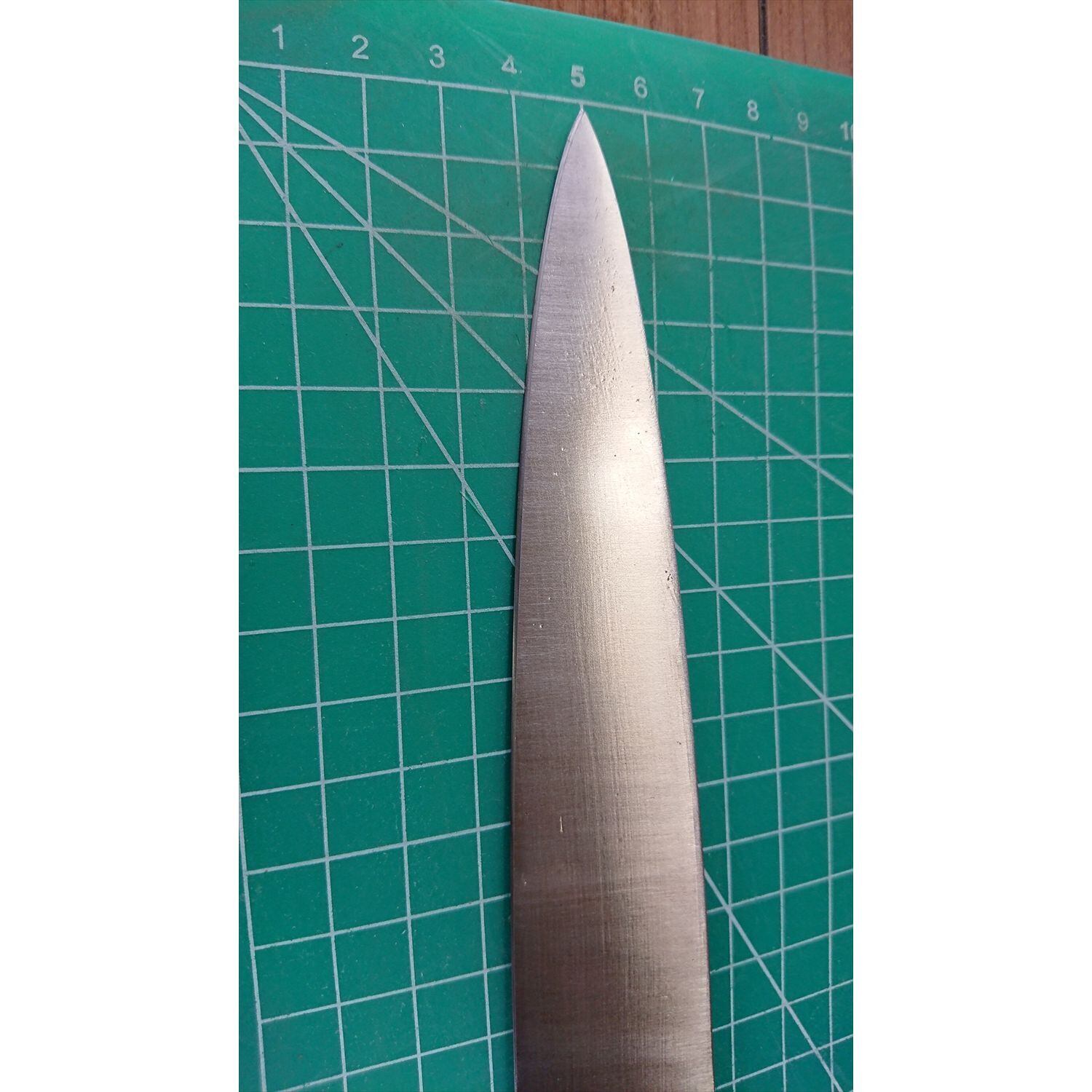 1. o2921/状態:中古/銘:銘?/筋引包丁(両刃 左5:右5 右利き・左利き兼用)/刃長:230/峰厚 アゴ上:1.7/重量:123/作り:ステンレス系/他: