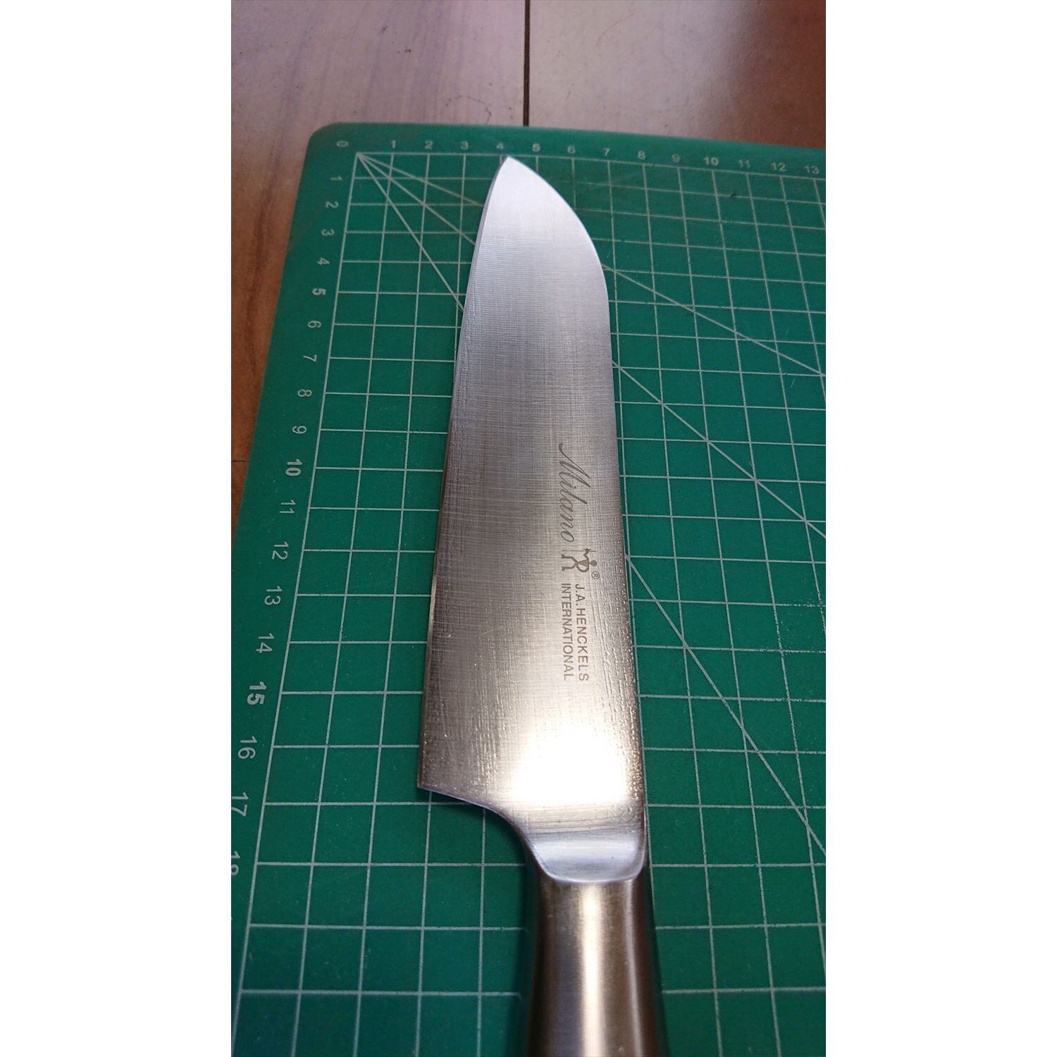 1. o2810/状態:中古/銘:ヘンケルス ミラノ/三徳包丁(両刃 左5:右5 右利き・左利き兼用)/刃長:175/峰厚 アゴ上:1.7/重量:129/作り:ステンレス/他: