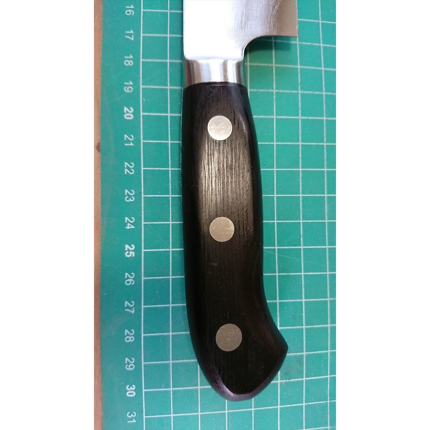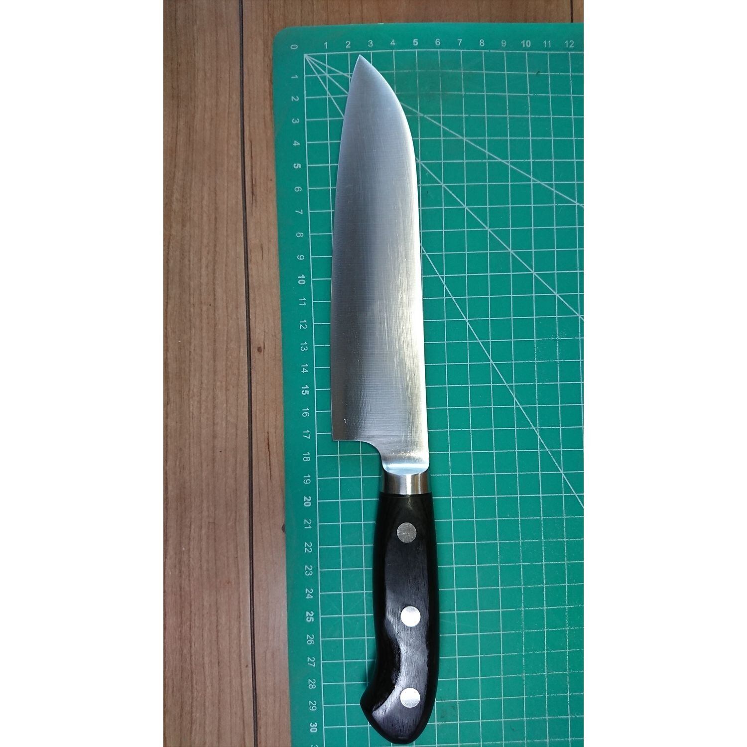 1. o2935/状態:中古/銘:関兼次 PRO・M/三徳包丁(両刃 左5:右5 右利き・左利き兼用)/刃長:175/峰厚 アゴ上:1.8/重量:149/作り:ICE HARDENED MOLYBDENUM STEEL/他: