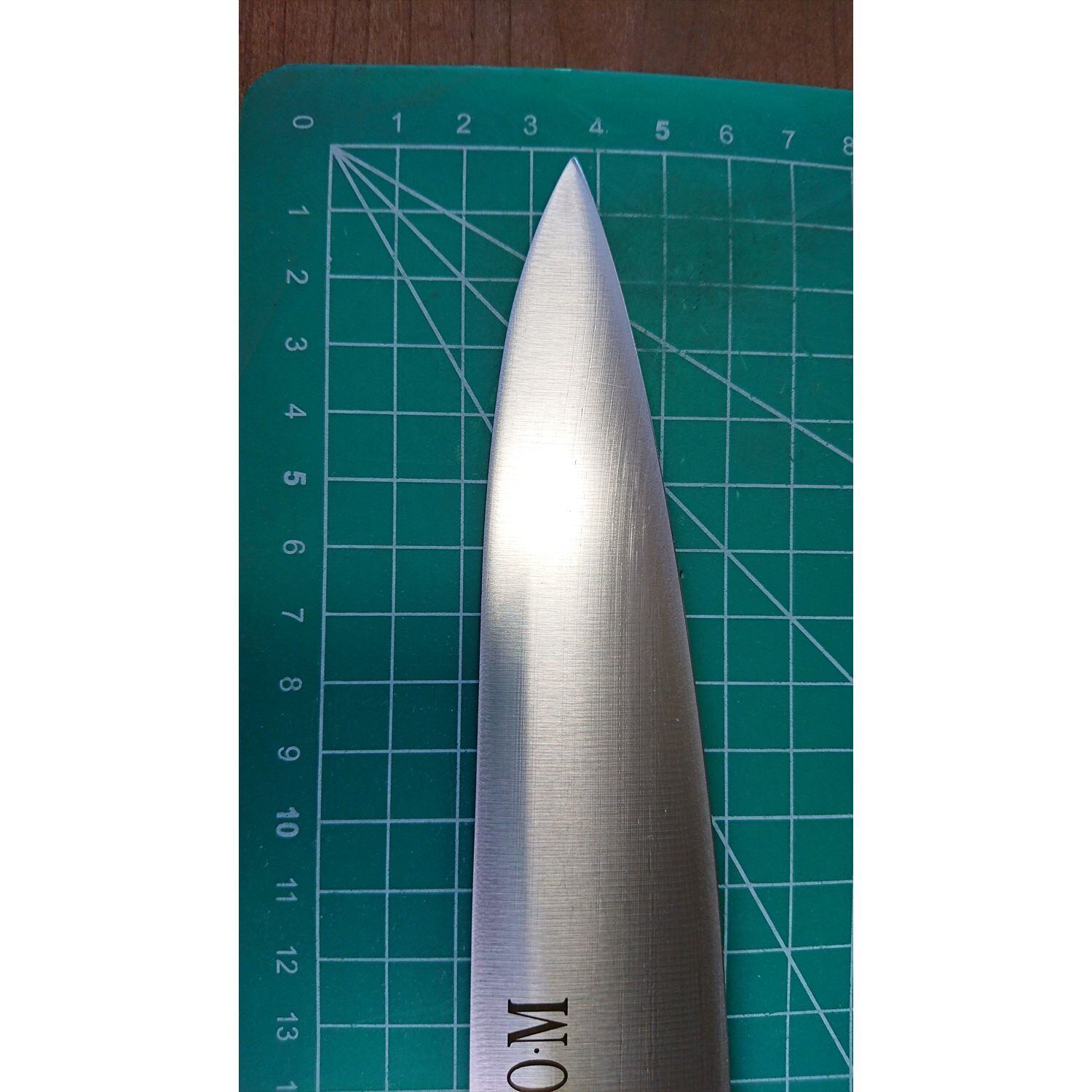 1. o2937/状態:中古/銘:関兼次 PRO・M/牛刀(両刃 左5:右5 右利き・左利き兼用)/刃長:180/峰厚 アゴ上:1.7/重量:132/作り:ICE HARDENED MOLYBDENUM STEEL/他: