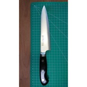 1. o2936/状態:中古/銘:関兼次 PRO・M/牛刀(両刃 左5:右5 右利き・左利き兼用)/刃長:180/峰厚 アゴ上:1.8/重量:142/作り:ICE HARDENED MOLYBDENUM STEEL/他: