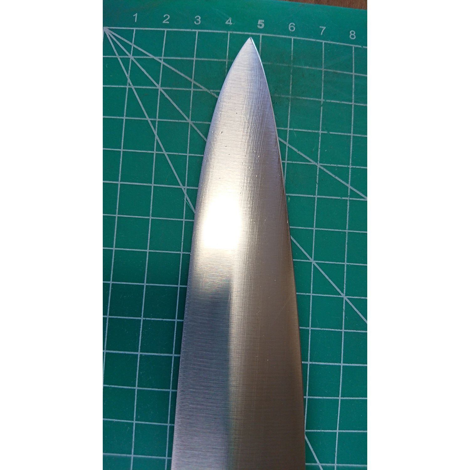 1. o2939/状態:中古/銘:関兼次 PRO・M/牛刀(両刃 左5:右5 右利き・左利き兼用)/刃長:210/峰厚 アゴ上:1.7/重量:153/作り:ICE HARDENED MOLYBDENUM STEEL/他: