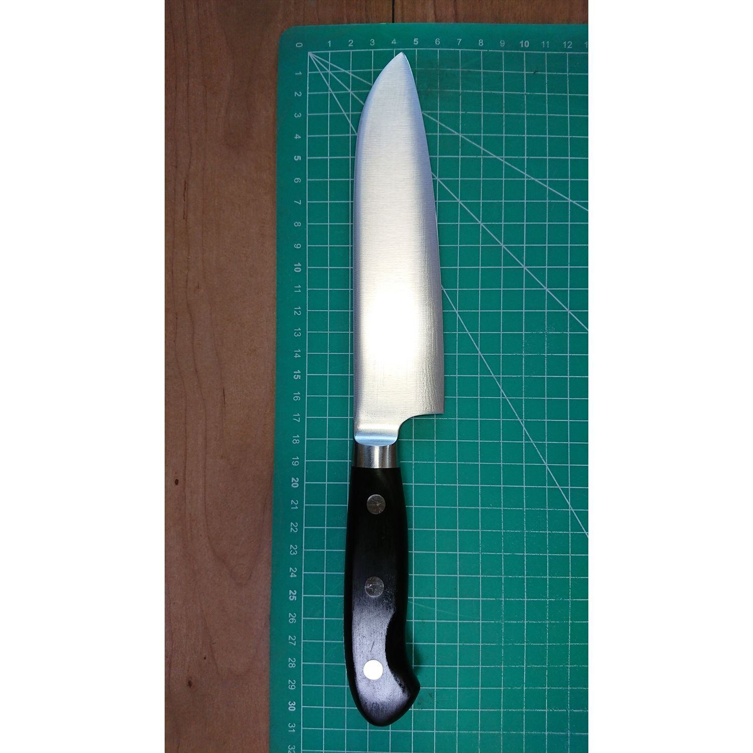 1. o2944/状態:中古/銘:銘?/三徳包丁(両刃 左5:右5 右利き・左利き兼用)/刃長:165/峰厚 アゴ上:1.7/重量:148/作り:ステンレス/他: