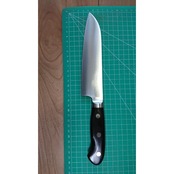 1. o2948/状態:中古/銘:銘?/三徳包丁(両刃 左5:右5 右利き・左利き兼用)/刃長:170/峰厚 アゴ上:1.8/重量:147/作り:ステンレス系/他: