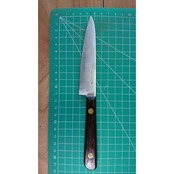 1. o2994/状態:中古/銘:木屋#1/ペティナイフ(両刃 左5:右5 右利き・左利き兼用)/刃長:110/峰厚 アゴ上:1.3/重量:46/作り:鋼/他:ツバの根元から柄全体にかけて樹脂コーティング済み(防サビの為)