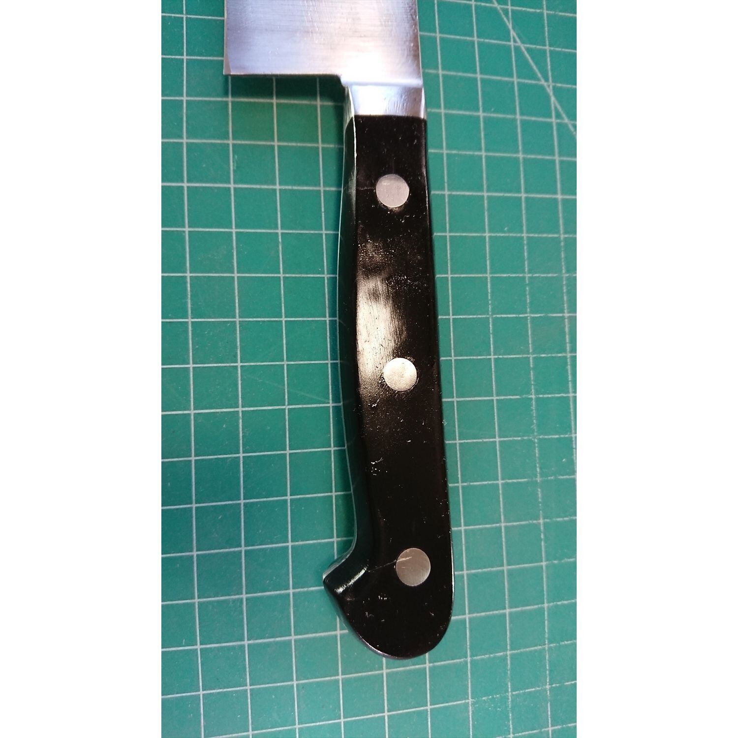 1. o3019/状態:中古/銘:ヘンケルス/牛刀(両刃 左5:右5 右利き・左利き兼用)/刃長:180/峰厚 アゴ上:2.3/重量:158/作り:ステンレス/他:柄はオーバーホール済み(リベットは新品交換済み)