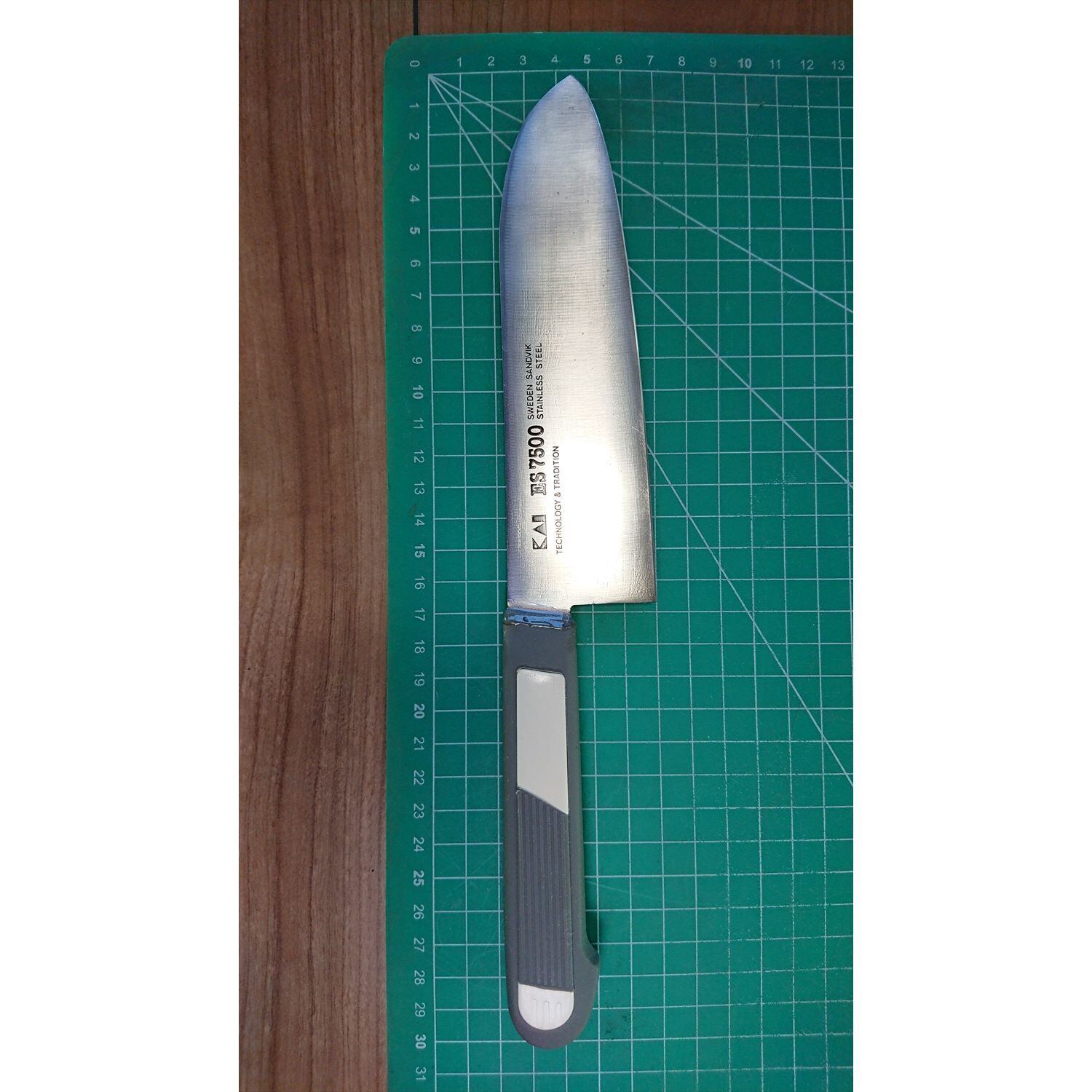1. o3023/状態:中古/銘:KAI ES7500/三徳包丁(両刃 左5:右5 右利き・左利き兼用)/刃長:165/峰厚 アゴ上:1.8/重量:120/作り:SWEDEN SANDVIK STAINLESS STEEL/他: