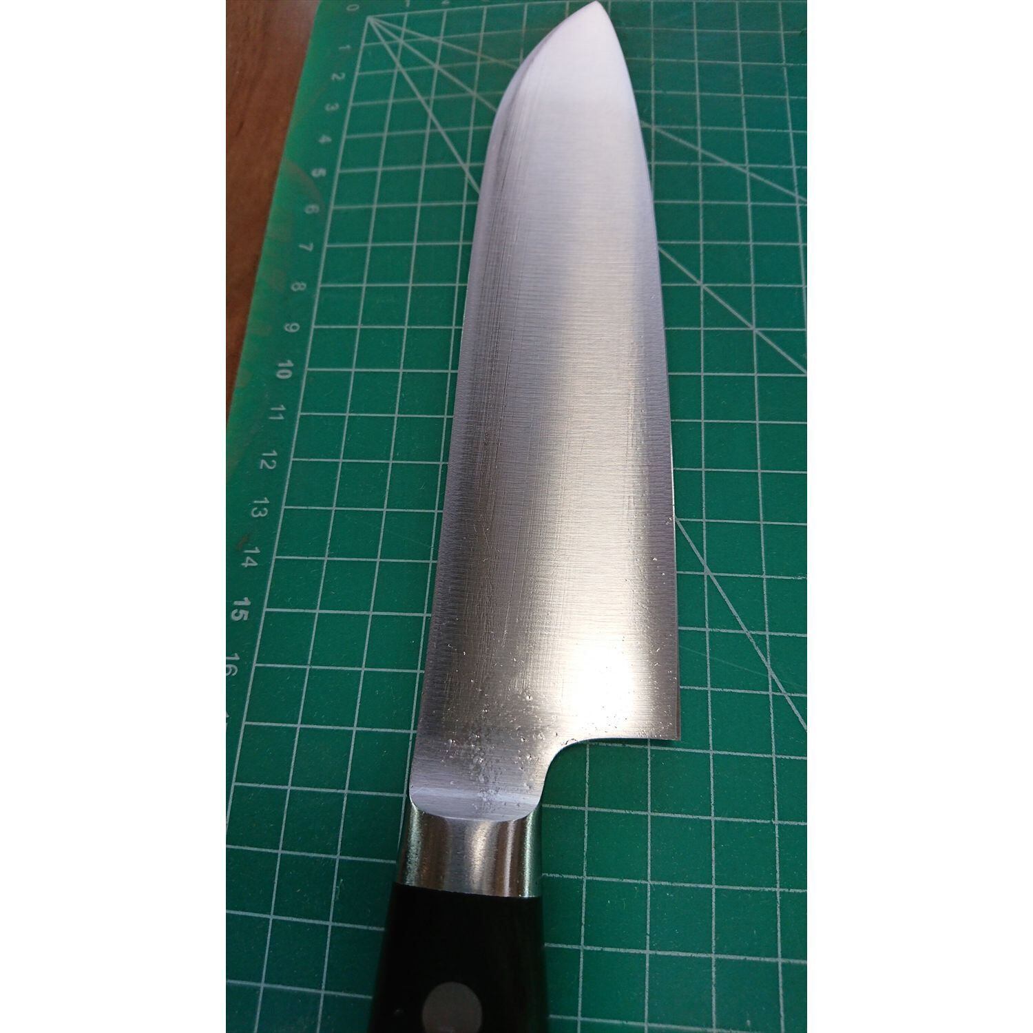 1. o2964/状態:中古/銘:銘?/三徳包丁(両刃 左5:右5 右利き・左利き兼用)/刃長:170/峰厚 アゴ上:1.5/重量:149/作り:ステンレス系/他: