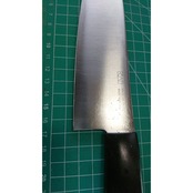 1. o3027/状態:中古/銘:関孫六/三徳包丁(両刃 左5:右5 右利き・左利き兼用)/刃長:165/峰厚 アゴ上:1.4/重量:98/作り:ステンレス/他: