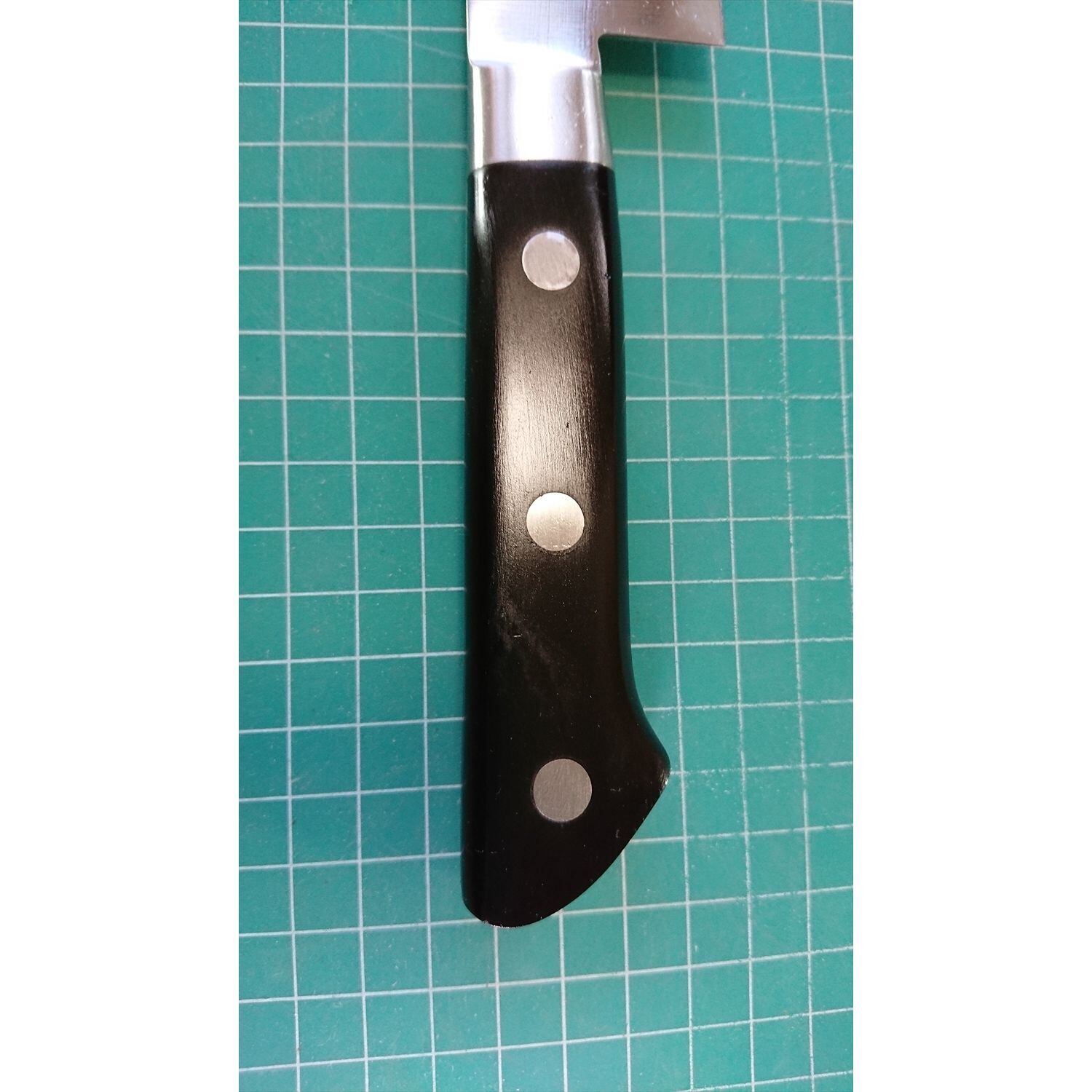 1. o3048/状態:中古/銘:藤次郎/牛刀(両刃 左5:右5 右利き・左利き兼用)/刃長:205/峰厚 アゴ上:1.8/重量:185/作り:DPコバルト合金鋼割込/他: