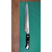 1. o2945/状態:中古/銘:銘?/筋引包丁(両刃 左5:右5 右利き・左利き兼用)/刃長:235/峰厚 アゴ上:1.8/重量:156/作り:ステンレス系/他: