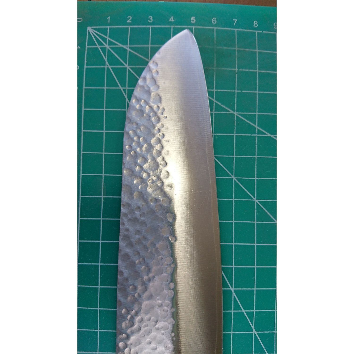 1. o2899/状態:中古/銘:銘?/三徳包丁(両刃 左5:右5 右利き・左利き兼用)/刃長:170/峰厚 アゴ上:2/重量:202/作り:鎚目鍛造 ステンレス系/他: