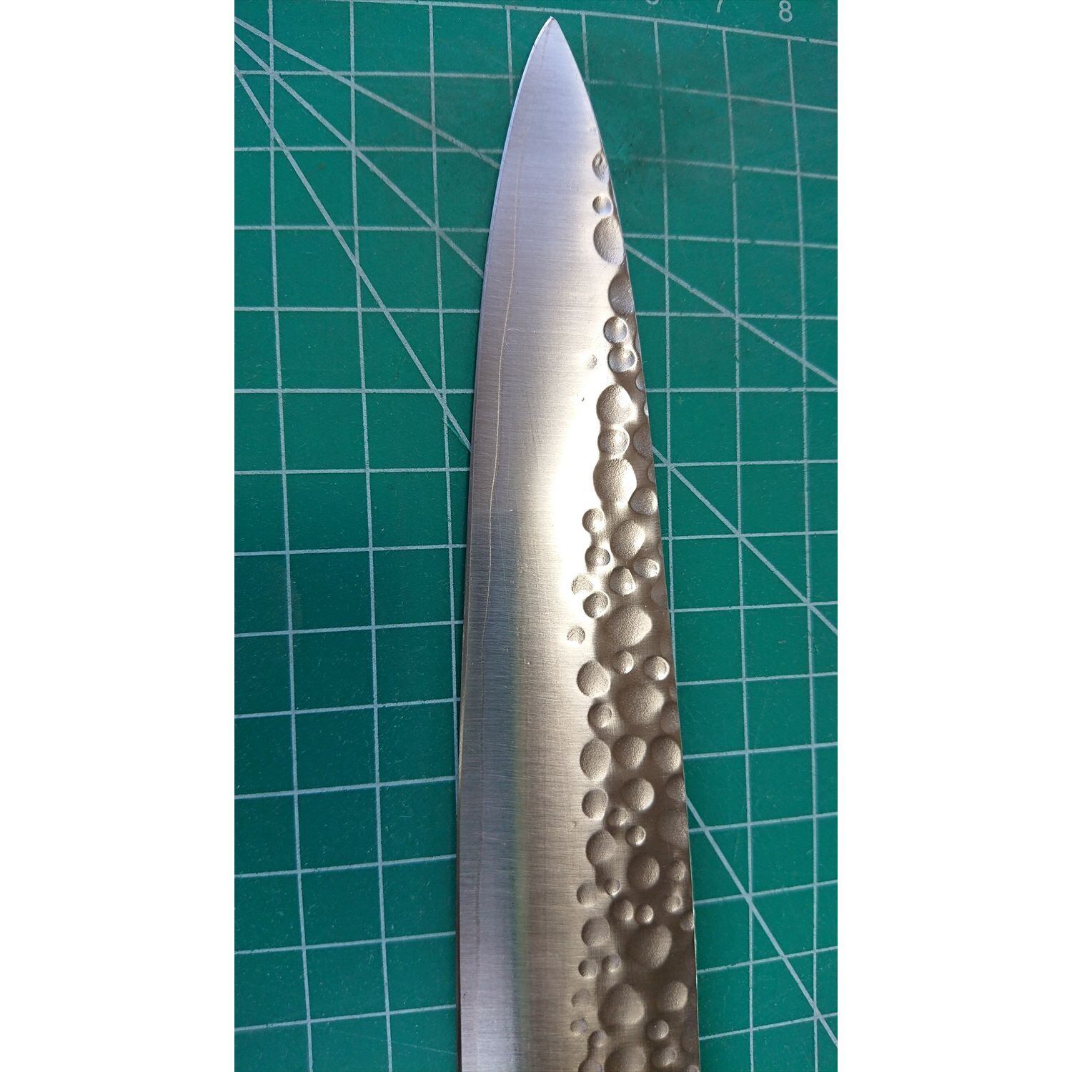 1. o2902/状態:中古/銘:関兼次 PRO・J/筋引包丁(両刃 左5:右5 右利き・左利き兼用)/刃長:210/峰厚 アゴ上:2.1/重量:182/作り:鎚目鍛造 ICE HARDENED HI-CARBON STAINLESS/他: