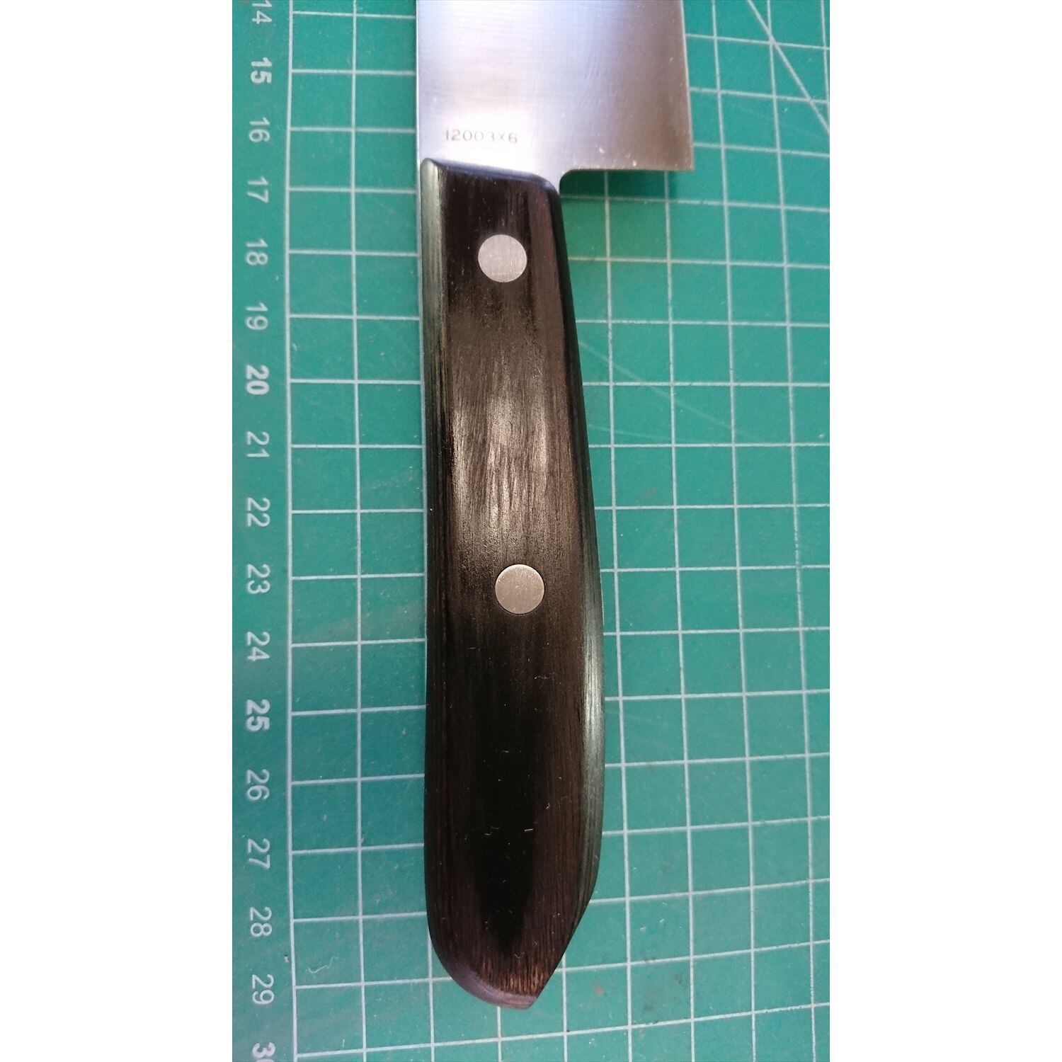 1. o3098/状態:中古/銘:KIYA EDELWEISS/三徳包丁(両刃 左5:右5 右利き・左利き兼用)/刃長:170/峰厚 アゴ上:1.7/重量:114/作り:STAINLESS SUB ZERO/他: