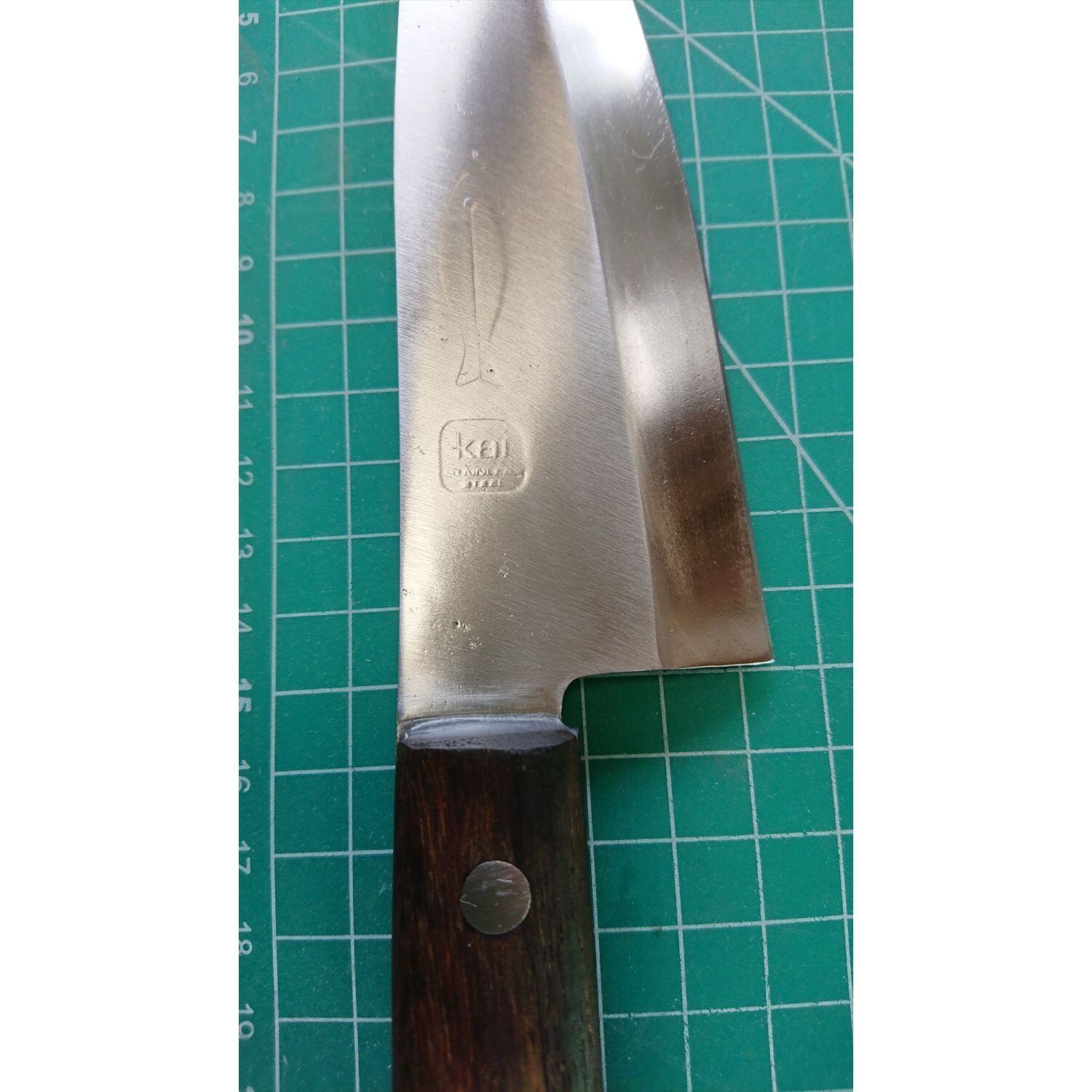 1. o3071/状態:中古/銘:KAI/出刃包丁(片刃 右利き用)/刃長:150/峰厚 アゴ上:3.3/重量:169/作り:ステンレス/他: