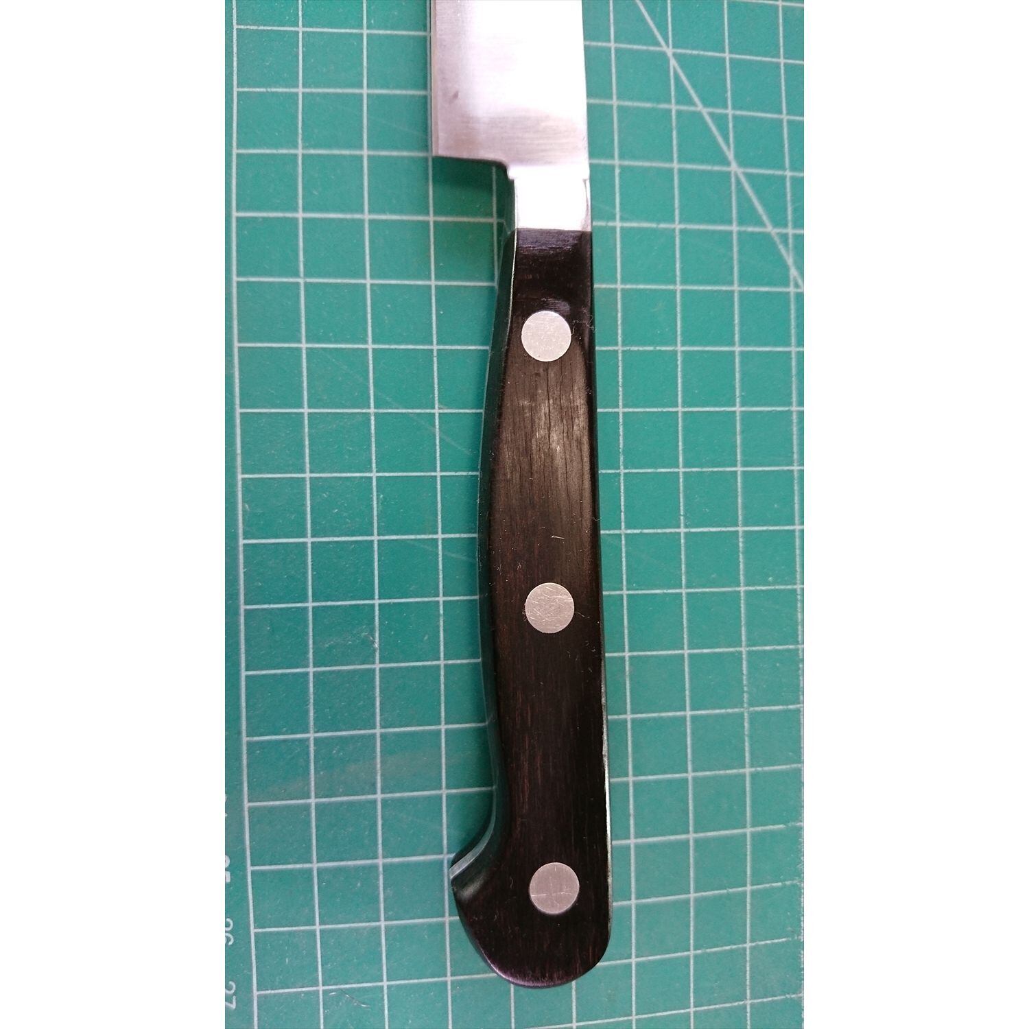 1. o3148/状態:中古/銘:EIKER MESSER SOLINGEN GERMANY/ペティナイフ(両刃 左5:右5 右利き・左利き兼用)/刃長:145/峰厚 アゴ上:2.6/重量:106/作り:INOX/他: