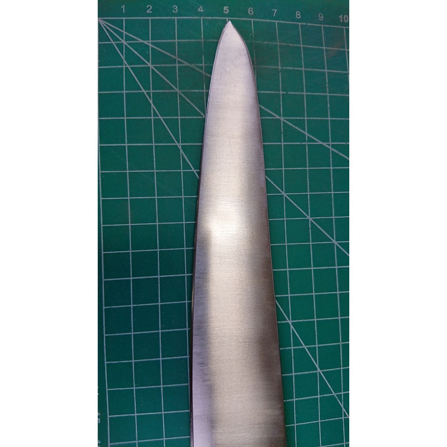 1. o3144/状態:中古/銘:銘?/筋引包丁(両刃 左5:右5 右利き・左利き兼用)/刃長:205/峰厚 アゴ上:1.5/重量:171/作り:ステンレス系/他: