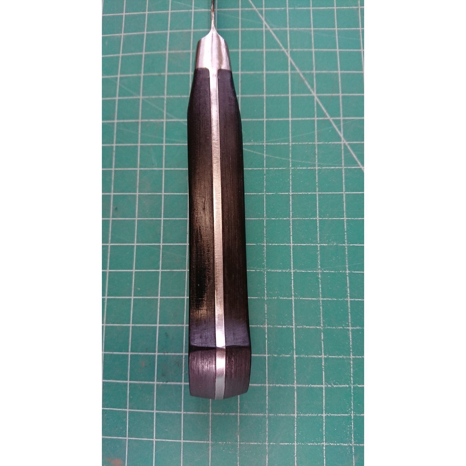 1. o3218/状態:中古/銘:銘?/三徳包丁(両刃 左5:右5 右利き・左利き兼用)/刃長:165/峰厚 アゴ上:1.7/重量:174/作り:ステンレス系/他: