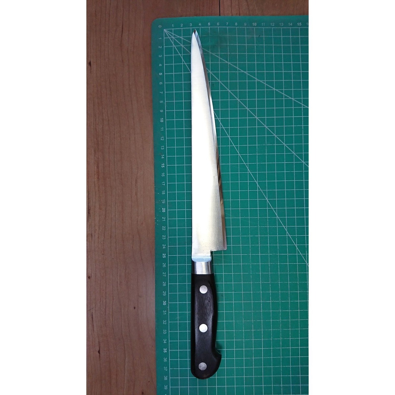 1. o3290/状態:中古/銘:SAKAI TAKAYUKI(堺孝行)/筋引包丁(両刃 約 左1:右9 右利き用)/刃長:245/峰厚 アゴ上:2.4/重量:223/作り:UDDEHOLM SWEDISH STEEL/他: