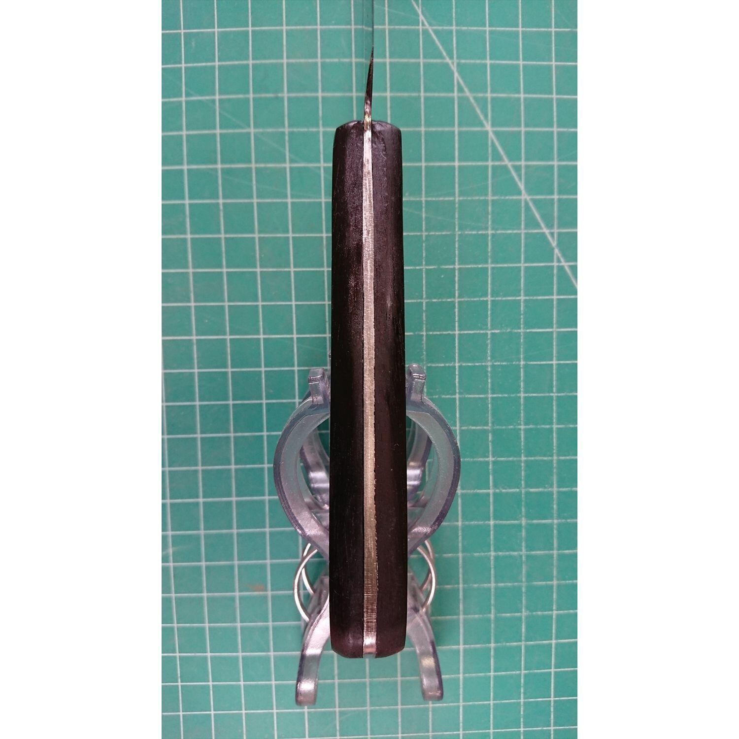 1. o3260/状態:中古/銘:廣友/牛刀(両刃 左5:右5 右利き・左利き兼用)/刃長:185/峰厚 アゴ上:1.8/重量:153/作り:割込鋼(鋼をステンレスでサンド)?/他:
