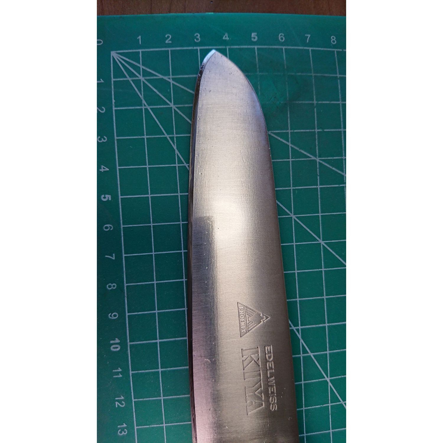 1. o3367/状態:中古/銘:EDELWEISS KIYA/三徳包丁(両刃 左5:右5 右利き・左利き兼用)/刃長:160/峰厚 アゴ上:1.9/重量:118/作り:ステンレス/他: