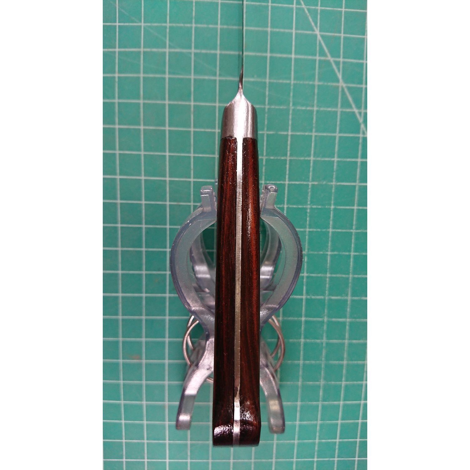 1. o3397/状態:中古/銘:堺一文字光秀/ペティナイフ(両刃 左5:右5 右利き・左利き兼用)/刃長:140/峰厚 アゴ上:1.5/重量:69/作り:鋼 特上/他:ツバの根元から柄全体にかけて樹脂コーティング済み(防サビ防汚の為)