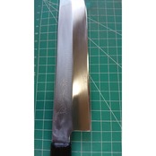 1. o3444/状態:中古/銘:木屋 義久/薄刃包丁(片刃 右利き用)/刃長:155/峰厚 アゴ上:3.9/重量:129/作り:鋼/他:ツバの根元から柄全体にかけて樹脂コーティング済み(防サビ防汚の為)