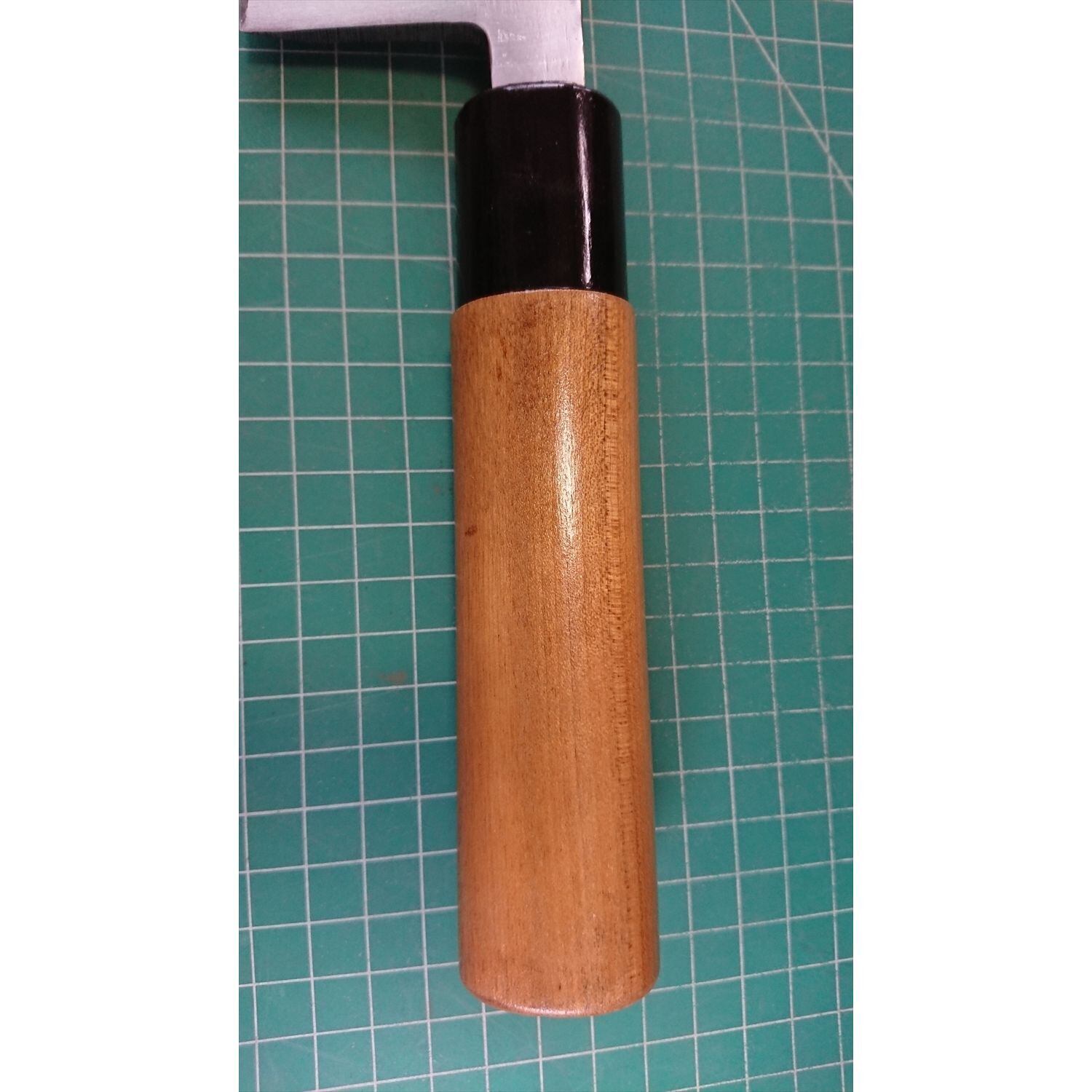 1. o3448/状態:中古/銘:堺信清/出刃包丁(片刃 右利き用)/刃長:210/峰厚 アゴ上:9.1/重量:489/作り:鋼/他:ツバの根元から柄全体にかけて樹脂コーティング済み(防サビ防汚の為)