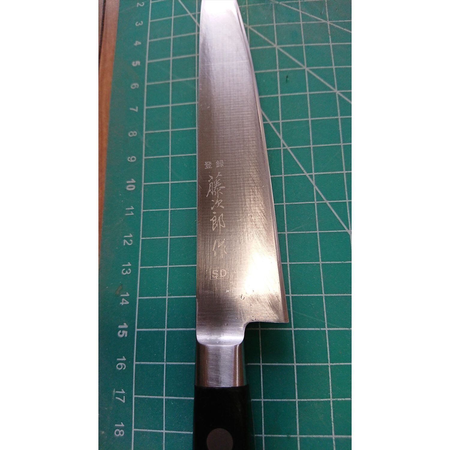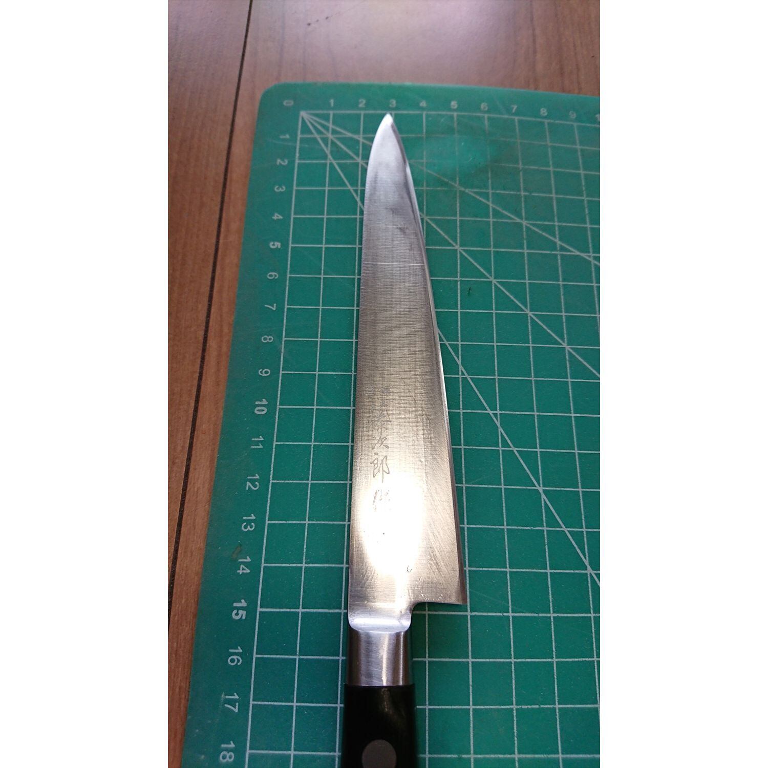 1. o3452/状態:中古/銘:藤次郎SD/ペティナイフ(両刃 約 左1:右9 右利き用)/刃長:150/峰厚 アゴ上:1.9/重量:82/作り:モリブデンバナジウム鋼/他: