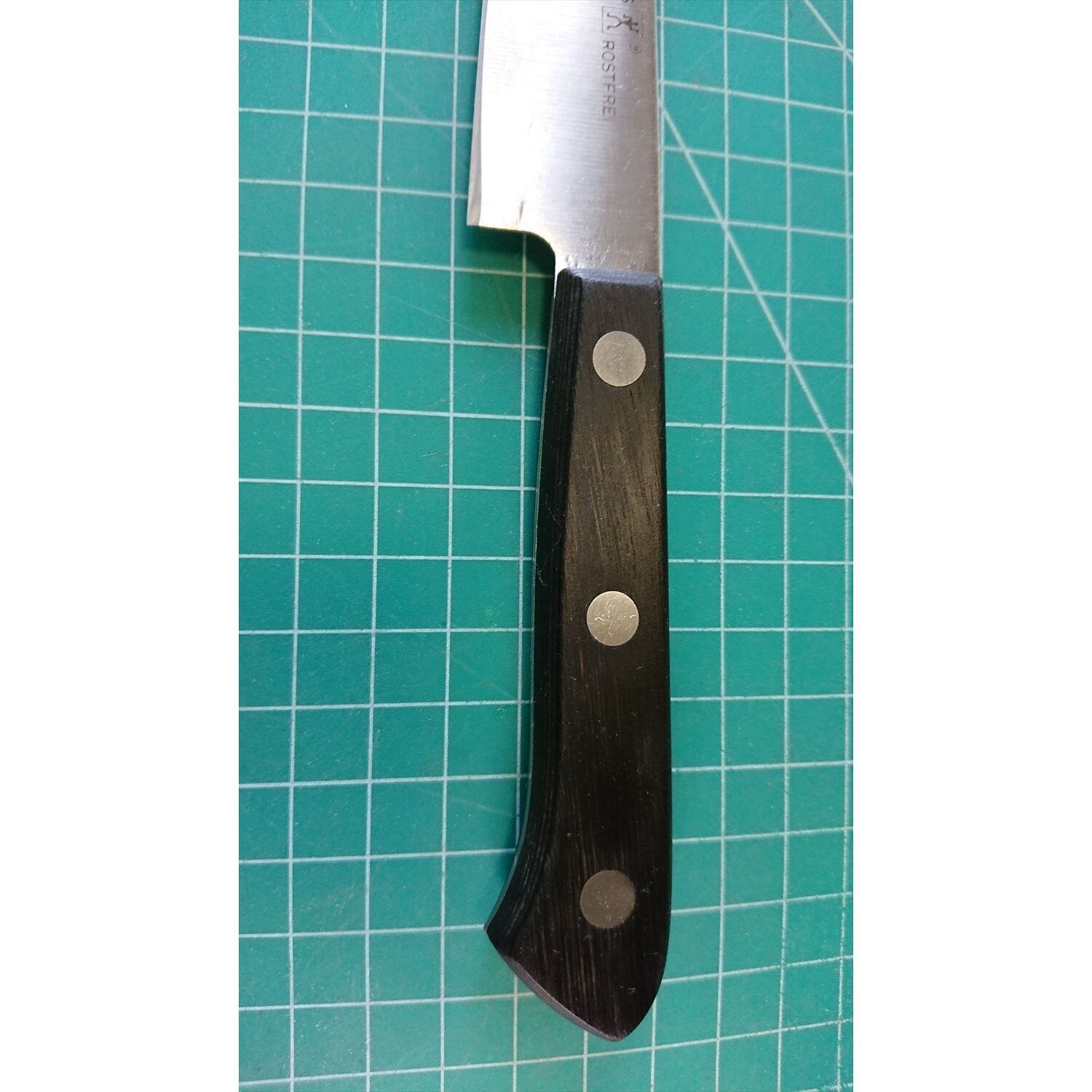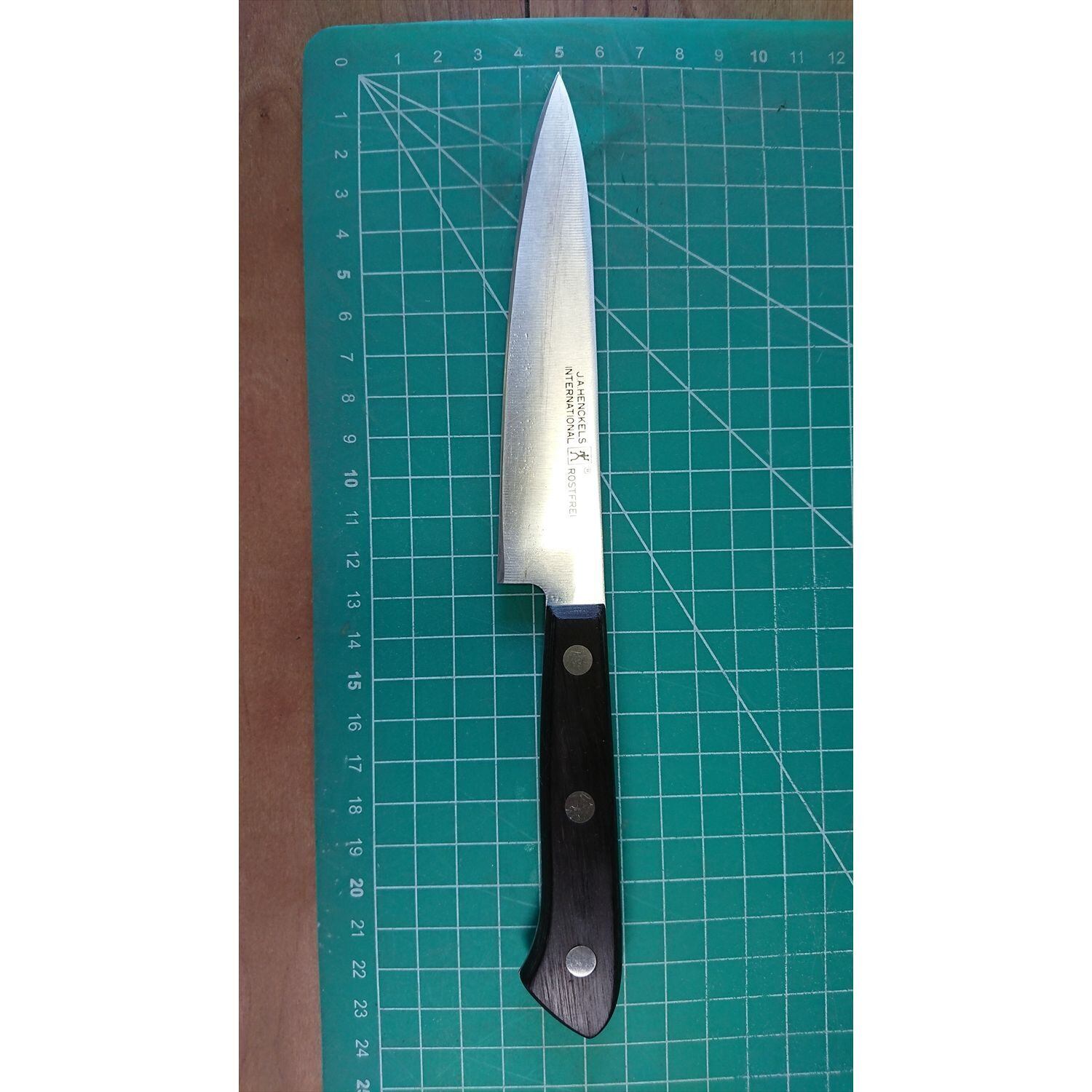 1. o3511/状態:中古/銘:ヘンケルス/ペティナイフ(両刃 左5:右5 右利き・左利き兼用)/刃長:125/峰厚 アゴ上:1.2/重量:60/作り:ステンレス/他: