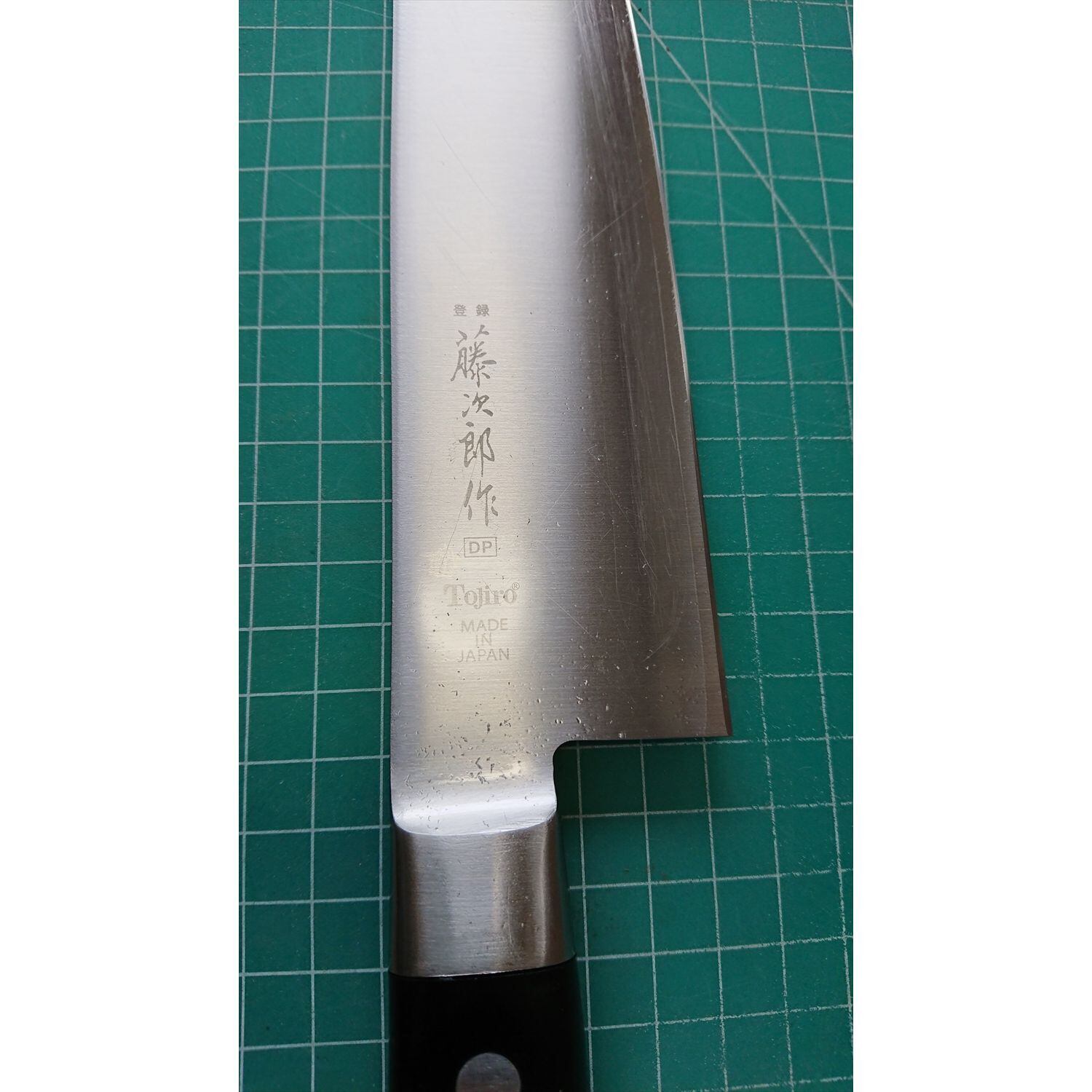 1. o3552/状態:中古/銘:藤次郎DP/牛刀(両刃 左5:右5 右利き・左利き兼用)/刃長:270/峰厚 アゴ上:2.4/重量:302/作り:コバルト合金鋼/他: