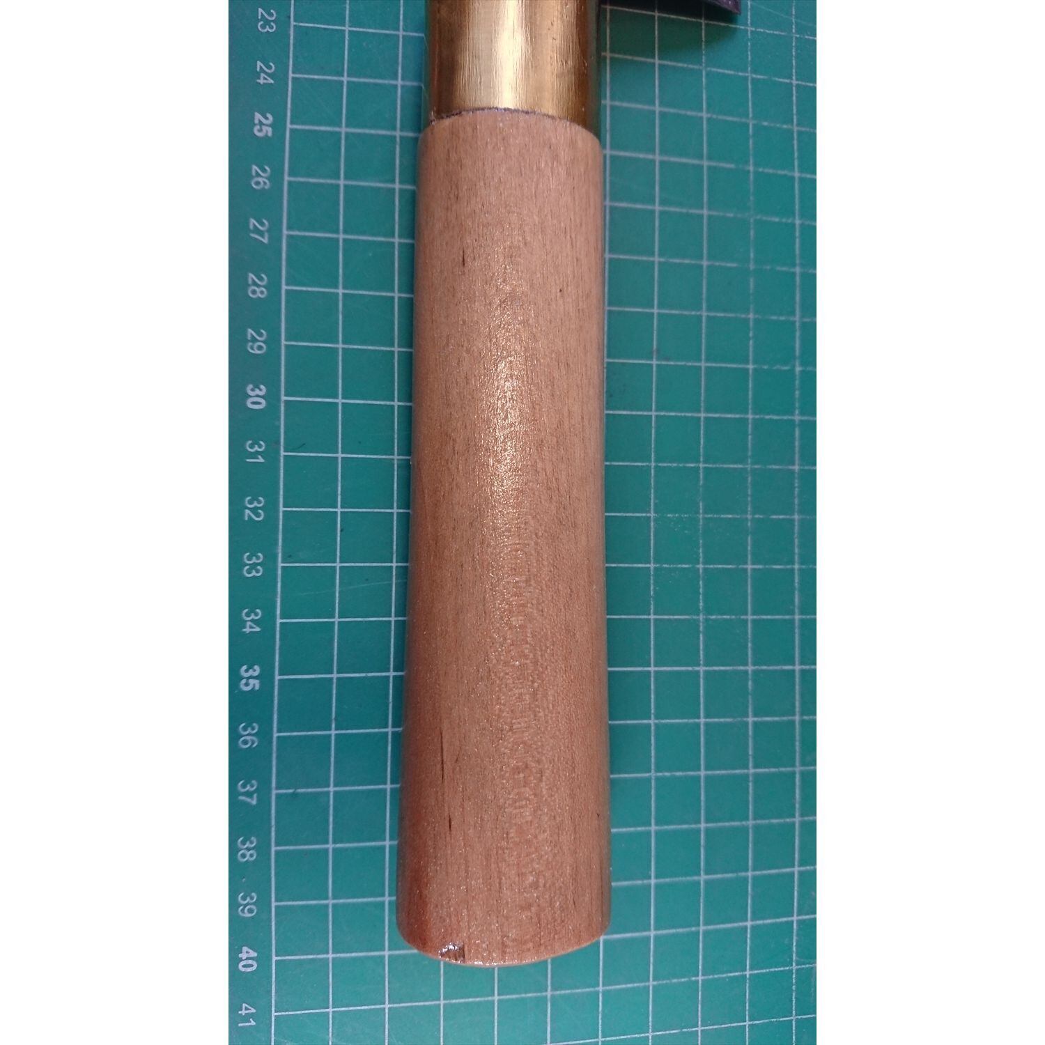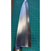 1. o3561/状態:中古/銘:銘?/出刃包丁(片刃 右利き用)/刃長:220/峰厚 アゴ上:8.9/重量:372/作り:鋼/他:ツバの根元から柄全体にかけて樹脂コーティング済み(防サビ防汚の為)