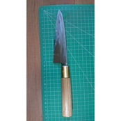 1. o3562/状態:中古/銘:銘?/身卸出刃包丁(片刃 右利き用)/刃長:145/峰厚 アゴ上:7.0/重量:147/作り:鋼/他:ツバの根元から柄全体にかけて樹脂コーティング済み(防サビ防汚の為)