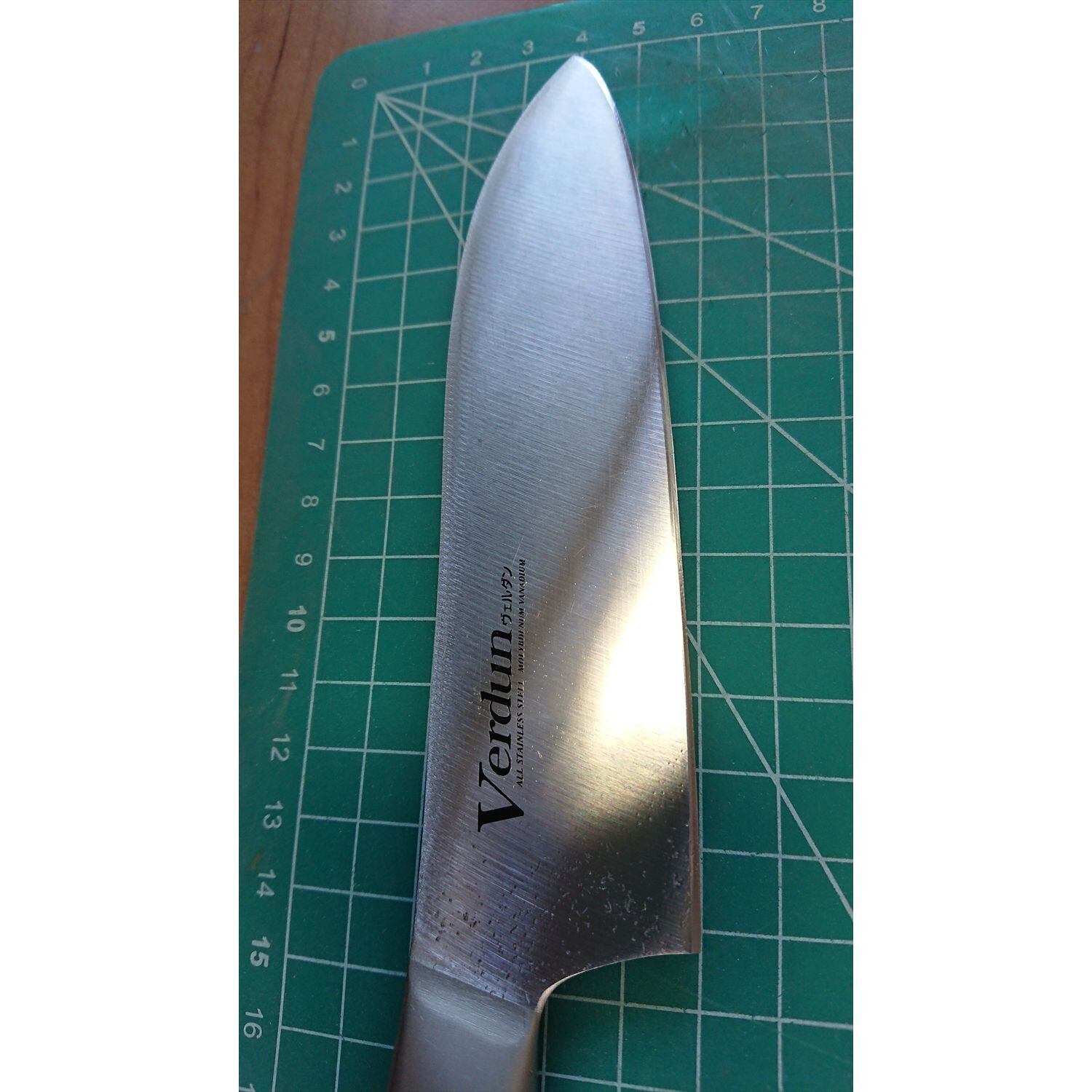 1. o3600/状態:中古/銘:ヴェルダン/三徳包丁(両刃 左5:右5 右利き・左利き兼用)/刃長:140/峰厚 アゴ上:1.7/重量:88/作り:STAINLESS MOLYBDENUM VANADIUM/他: