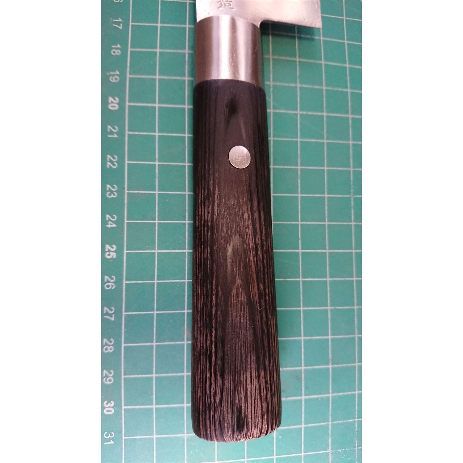 1. o3687/状態:中古/銘:宏元/牛刀(両刃 左5:右5 右利き・左利き兼用)/刃長:170/峰厚 アゴ上:2.1/重量:143/作り:本鍛造 割込鋼(鋼をステンレスでサンド)/他: